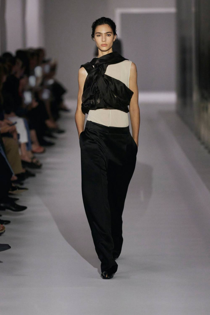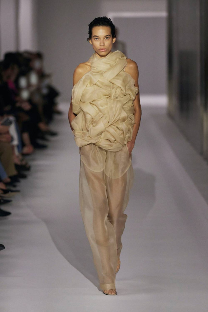 Pieter Mulier, à frente da Alaïa, apresentou seu desfile no Museu Guggenheim. A mudança transatlântica de Paris para Nova York, como ele mesmo explica em uma carta em primeira pessoa, é uma “oportunidade e obsessão pela ideia da beleza norte-americana”. Na passarela, é possível ver referências ao costureiro Charles James e à pioneira do sportswear estadunidense Claire McCardell, um dos grandes presentes que a moda norte-americana deixou para o mundo. Esses elementos aparecem na visão elegante e arquitetônica de Mulier e, ao mesmo tempo, nas releituras de Tommy Hilfiger, que remixou códigos náuticos e marítimos, combinando-os com uniformes colegiais e esportivos. O seu clássico TF também aparece (gritando!) em muitas peças, em um típico estilo norte-americano.