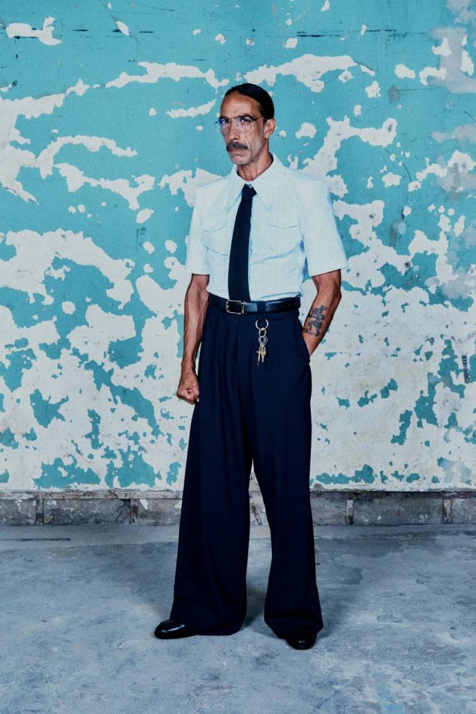 O designer Willy Chavarria escolheu um banco em desuso em Wall Street. Com uma cópia da Constituição Norte-Americana na cadeira de cada um dos convidados, ele fez uma coleção em homenagem às comunidades imigrantes do país e suas influências éticas e estéticas no trabalho, de uniformes de gerentes de hotéis a trabalhadores rurais. Em um momento em que o país se encontra às vésperas de uma eleição crucial, Chavarria destaca e celebra as pessoas que fazem o país funcionar e ainda são a espinha dorsal dos Estados Unidos.