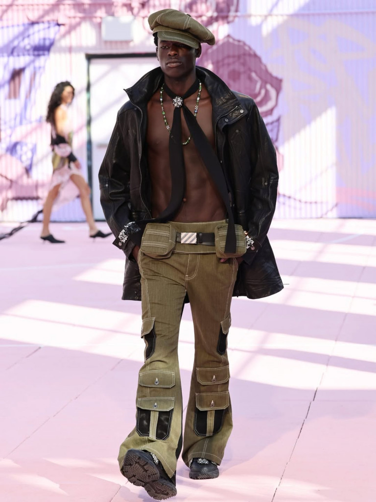 As peças mesclaram referências de workwear e estética americana com detalhes futuristas, criando um guarda-roupa utilitário e ao mesmo tempo experimental, que refletia o choque – e a fusão – entre tradição e inovação.