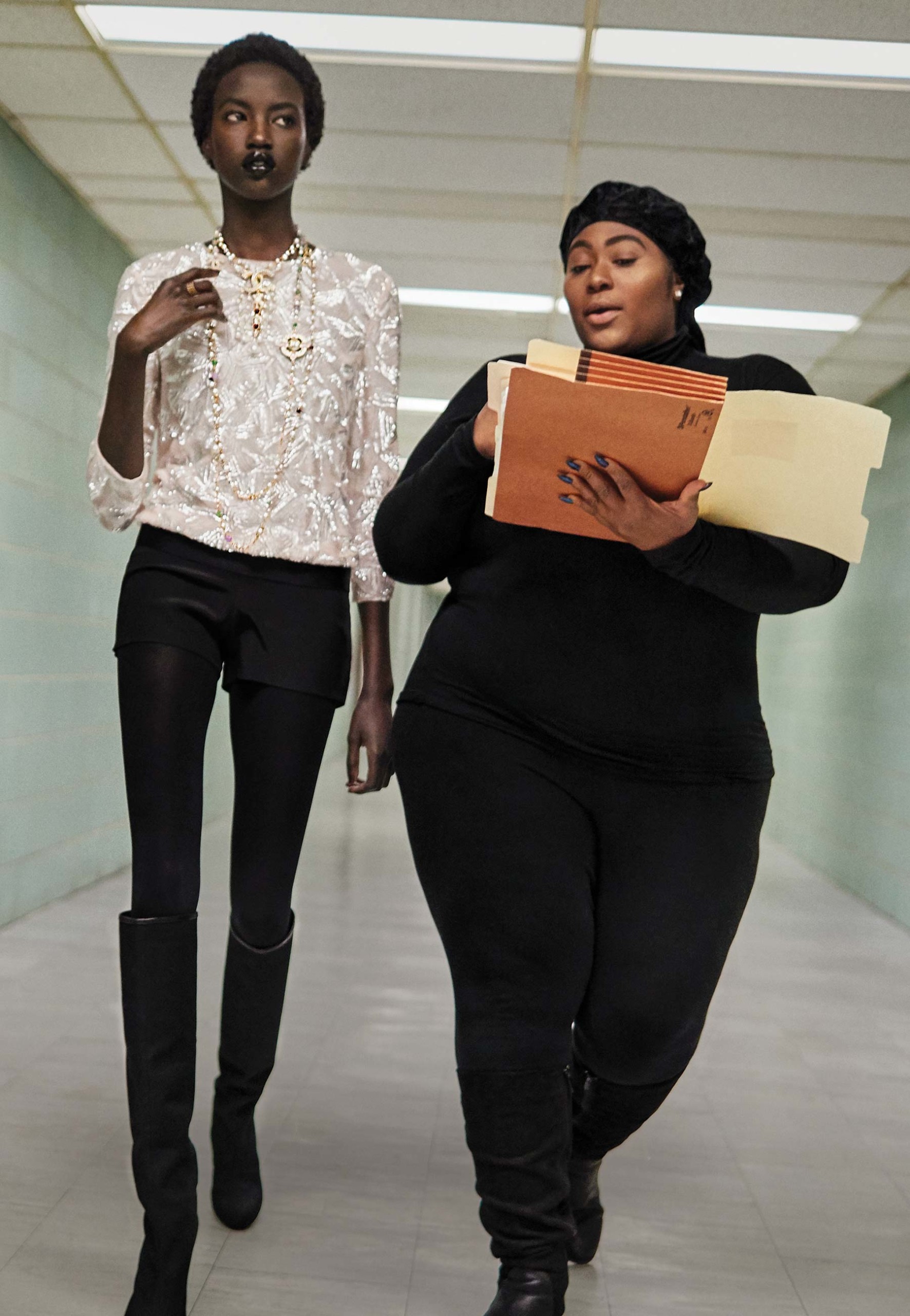 Anok Yai usa top, shorts, colar e legging da Chanel. Anel da Bulgari e botas Tom Ford – Foto: By KStudio, com cabelo de Ward e maquiagem de Erin Parsons
