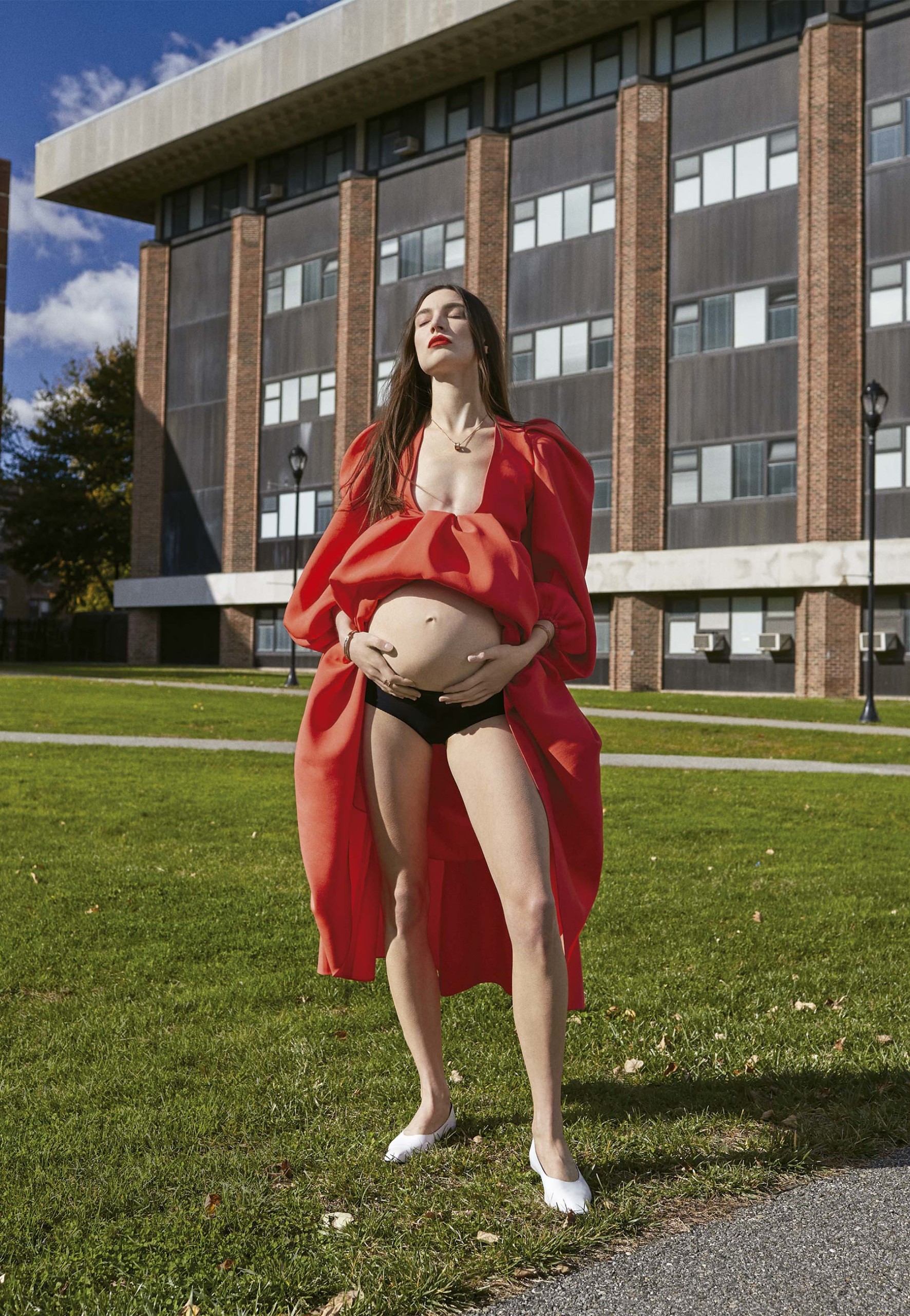 Jacquelyn Jablonski usa vestido, cinto e botas da Gucci. Taylor usa vestido, legging e sandália da Gucci.