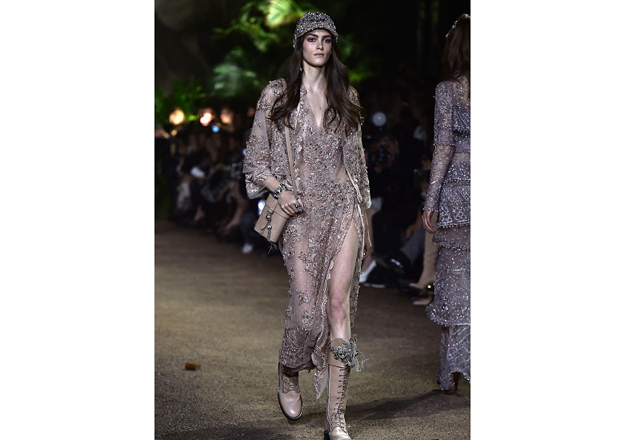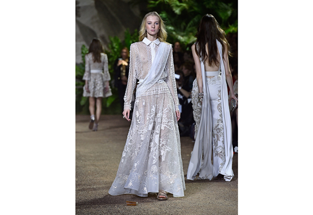 Uma inglesa que viaja à Índia foi o ponto de partida para Elie Saab criar sua coleção verão 2016 de alta-costura. E apesar do tema, em um primeiro momento, parecer destoar do universo do estilista, as criações trouxeram para a passarela tudo que se espera dele: bordados suntuosos, transparências e fluidez. A referência pôde ser vista nas modelagens, que conversam com os trajes tradicionais do país. Confira todos os detalhes em nossa galeria!