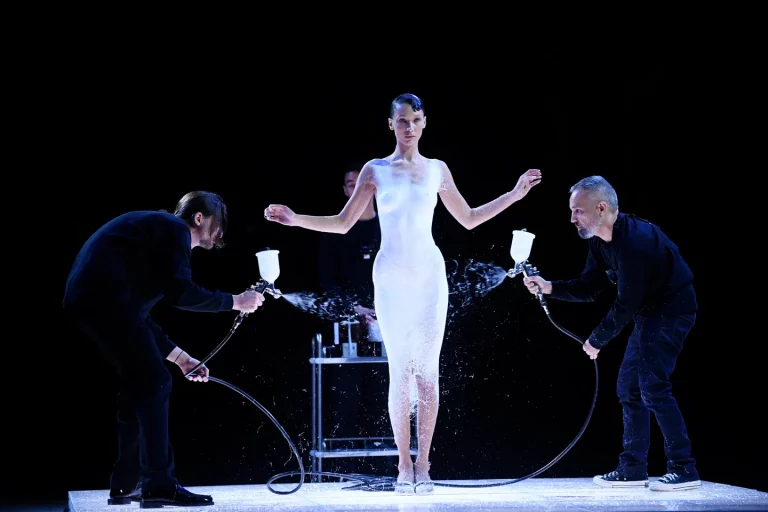 Após anos de inovação tecnológica e momentos virais como o vestido pulverizado em Bella Hadid, a marca anuncia ausência por conflito societário. Foto: Reprodução