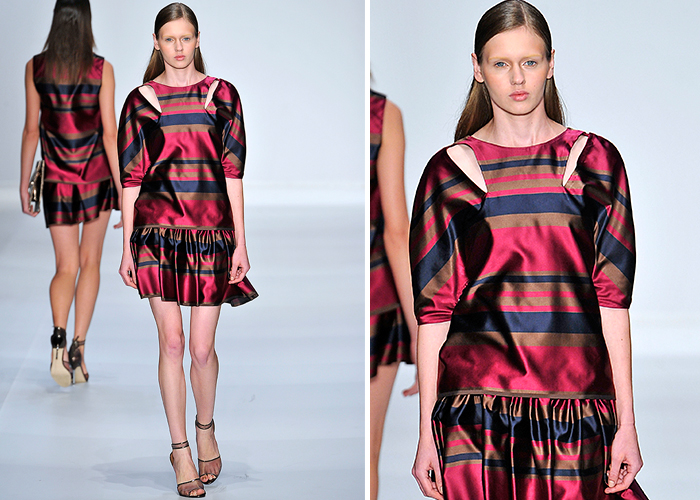 À base de muitas listras e mangas volumosas, Vitorino Campos confirma, em sua segunda apresentação no São Paulo Fashion Week, a condição de talento em ascensão da moda brasileira. Os materiais delicados de seu último verão, como seda, organza e tafetá, continuam, agora não mais em versão bonequinha de luxo minimalista, mas em um interessante mix de esporte com alfaiataria, urbano até dizer chega.