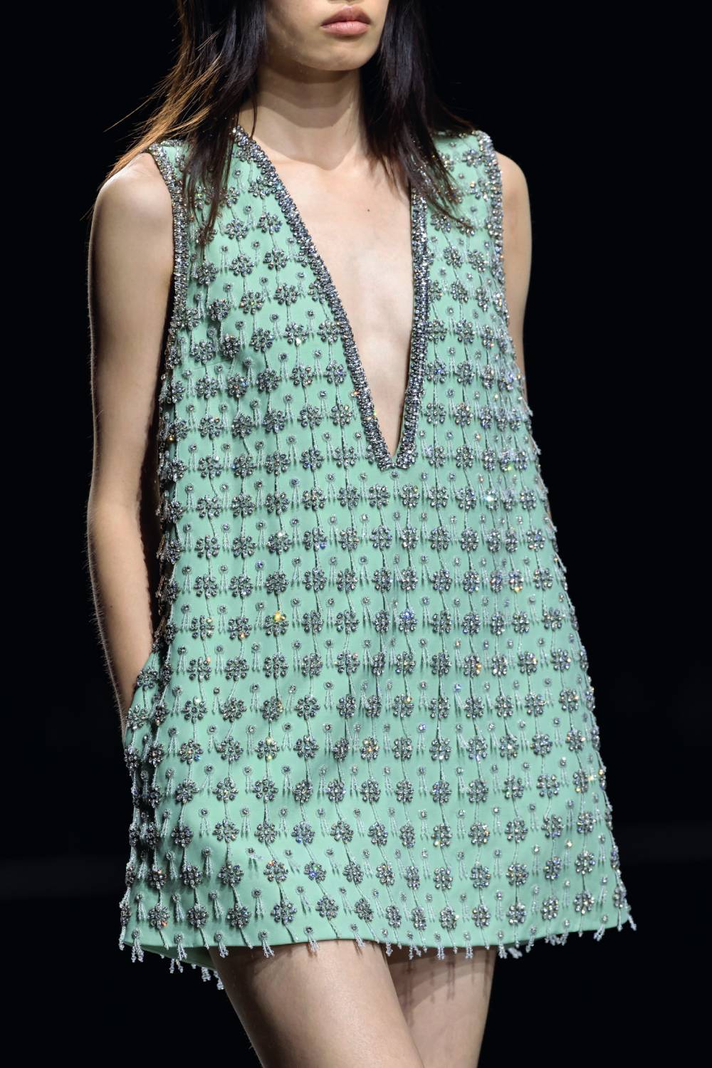 O corpo aparece sem vergonha ou tabu, dando fim à androginia azedada que Michele instigou e se aproximando da era de sensualidade de Tom Ford na casa. A referência ao norte-americano foi tamanha que uma camiseta regata branca bordada de cristais foi reproduzida diretamente da coleção de verão 1999 da Gucci, na qual a peça foi desfilada pela brasileira Vanessa Greca.