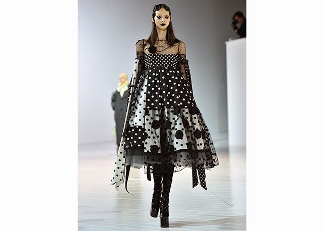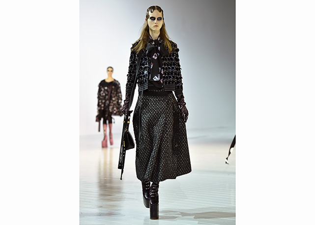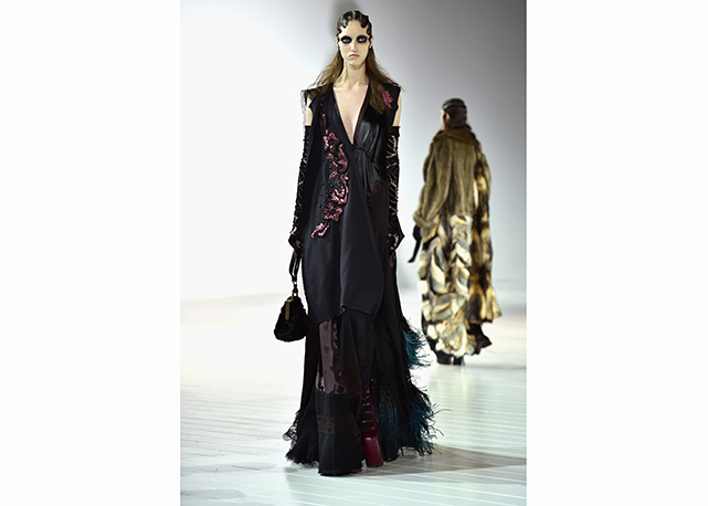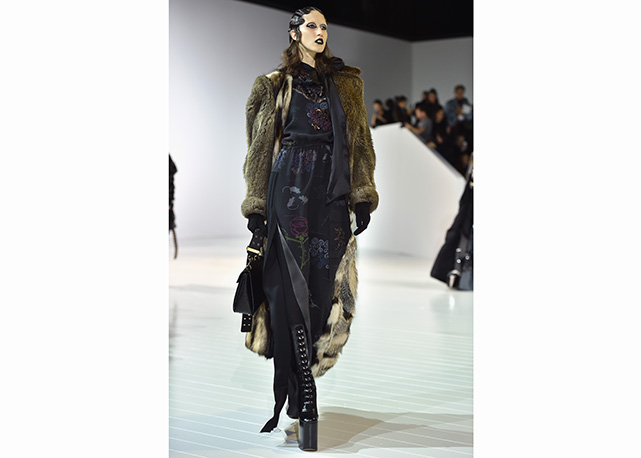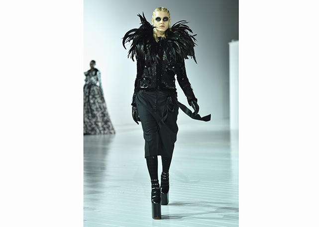 Elementos como pele e penas também aparecem em dramáticas combinações que mesclam o esportivo e o clássico. Destaque para a beleza pálida e com boca e olhos pretos supermarcados, tudo para gótica nenhuma ficar suave.
