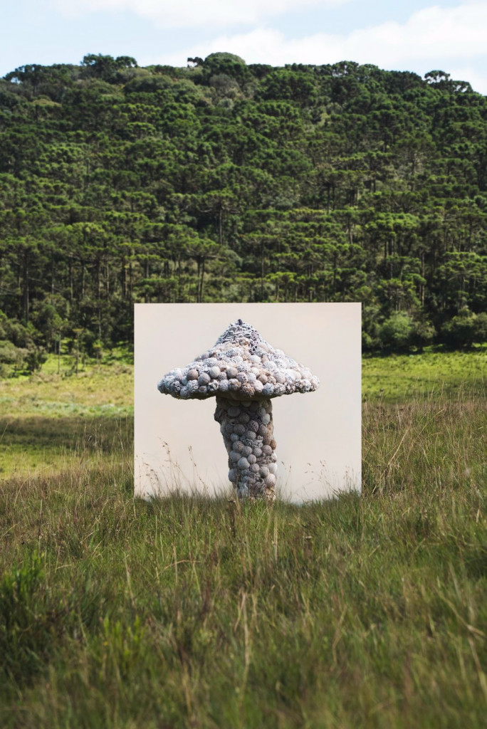 A inspiração para esse processo está no micélio — a parte invisível dos fungos, composta por filamentos que se espalham em rede, formando uma complexa malha de trocas e comunicação. Há quem o considere o primeiro exemplo real de interconectividade, muito antes que a palavra fosse apropriada pela linguagem tecnológica. Aliás, basta pensar: quando se fala em “nuvem”, hoje, o que nos vem à cabeça — o céu ou um servidor digital? A linguagem moderna muitas vezes desconecta os termos de suas raízes naturais, criando significados que apenas tocam a superfície do que essas palavras realmente carregam.
