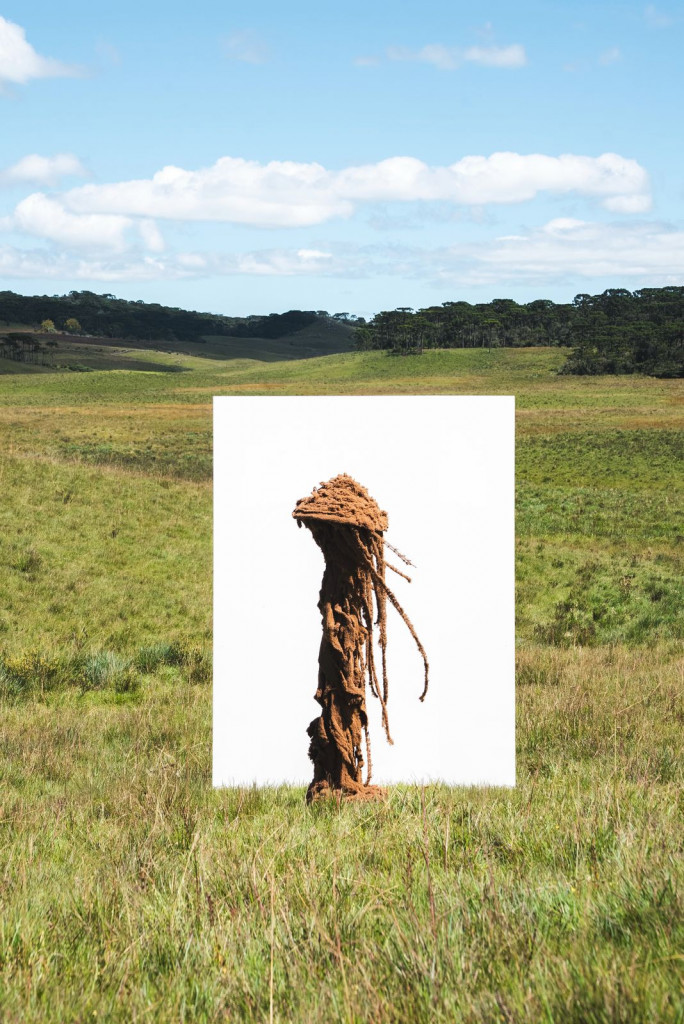 Essa abordagem coloca em xeque ideias que dominaram nossa visão de mundo por séculos: individualidade, autonomia, independência. Em contraponto, o micélio nos lembra da potência da colaboração, da inteligência compartilhada, do apoio mútuo entre organismos. Ele transporta nutrientes entre espécies diferentes, cuida dos mais frágeis, sustenta a vida por meio da conexão. O trabalho de Sandra parece escutar essa sabedoria silenciosa: “Os seres humanos estão interligados por fios invisíveis, conectando elementos como memória, ancestralidade”.