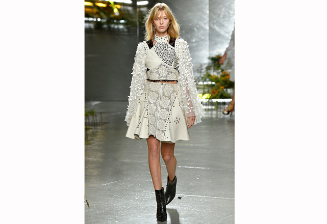 A Rodarte traz uma coleção de verão 2017 com um surpreendente mix de texturas. Ela apresenta peças cheias de babados, recortes diagonais, transparências, variedade de texturas e tecidos, aplicações, peles e assimetrias! Destaque para o couro misturado com tecidos fluidos e as diversas camadas de renda. Confira em nossa galeria todos os looks apresentados nessa terça-feira (13.09), durante a semana de moda de Nova York.