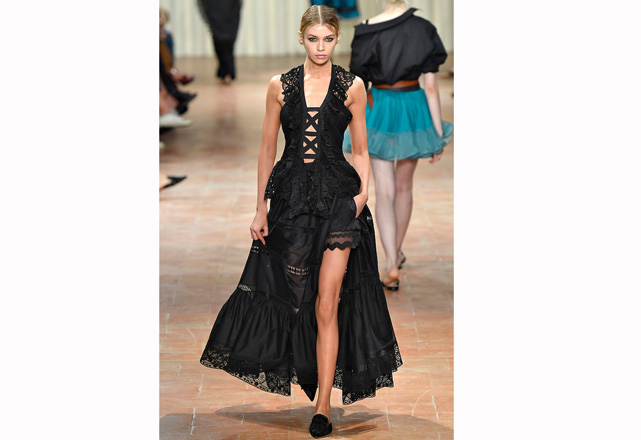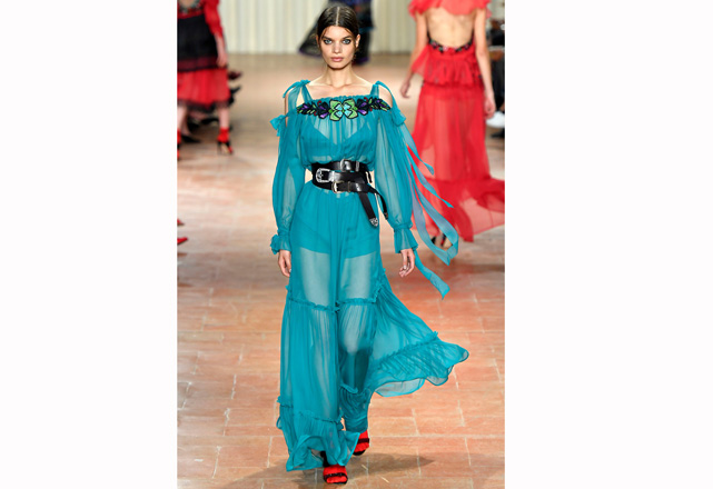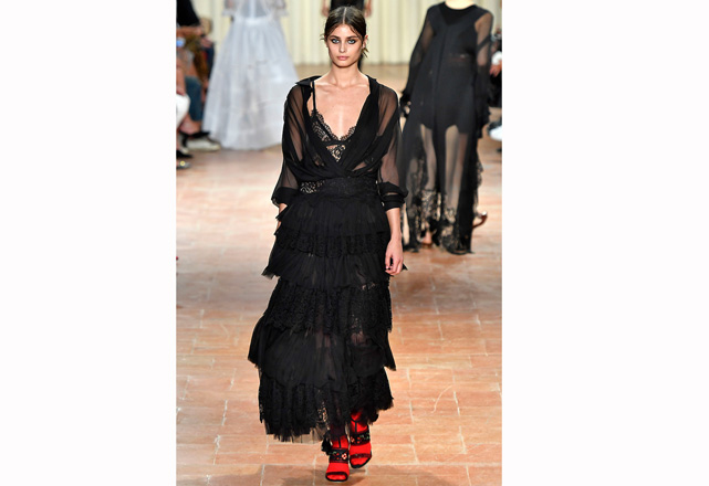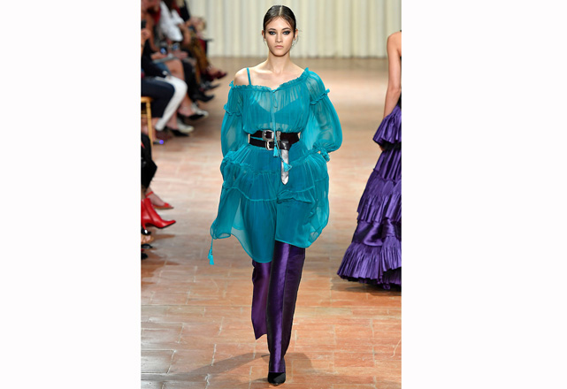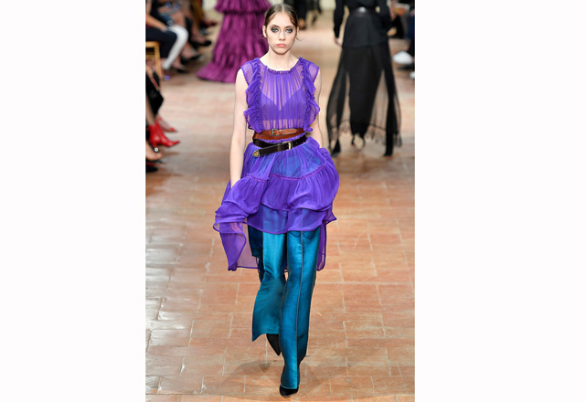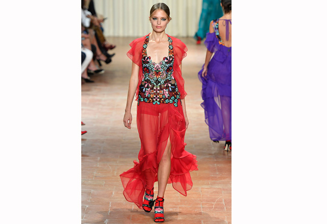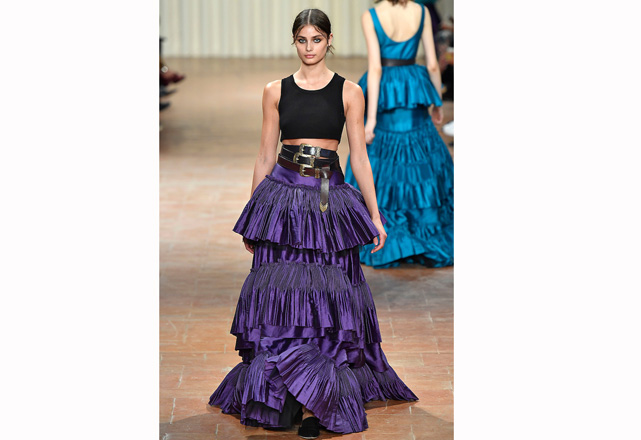 O romance é o que motiva a coleção de verão 2017 de Alberta Ferretti! Mas não é um romance delicado, é uma forma mais intensa e traduzida em tops de couro, muitos babados, saias volumosas, transparências e cores vibrantes em peças que exalam sensualidade. Outra parte apresentada foi a de alfaiataria, que aparece com uma cintura marcada e mistura a rigidez e fluidez dos tecidos, criando um contraste moderno e sexy. Confira em nossa galeria alguns dos looks desfilados nessa quarta-feira (21.09) durante a semana de moda de Milão.
