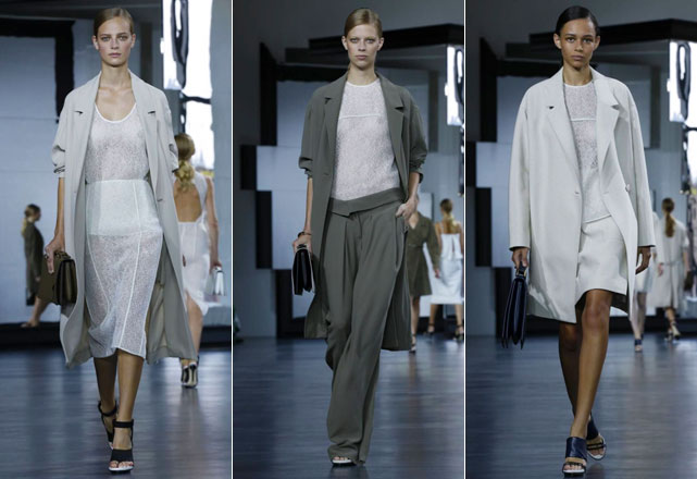As mulheres de Jason Wu, aliás, são várias, ainda que sempre prezando pela máxima elegância. Já vimos sua versão lady like, sua versão ultra sofisticada, sua versão sexy quase fetichista e, agora, chegamos na versão dia. Ou melhor, dia a dia, com opções que vão do trabalho ao lazer, muitas vezes num mesmo look, bem como pede o passo da vida nos tempos em que vivemos. Dos conjuntinhos safári, que abrem o desfile, com saia estrutura, jaqueta utilitária (atenção para esta peça nessa estação) e camisa soltinha, aos vestidos fluídos e transparentes sob casacos longos e leves, há aquele sensação de que são roupas que se adaptam a qualquer ambiente ou ocasião. Na verdade, o que se vê aqui é a interpretação do estilista sobre a alta demanda por básicos com toque e imagem de luxo.