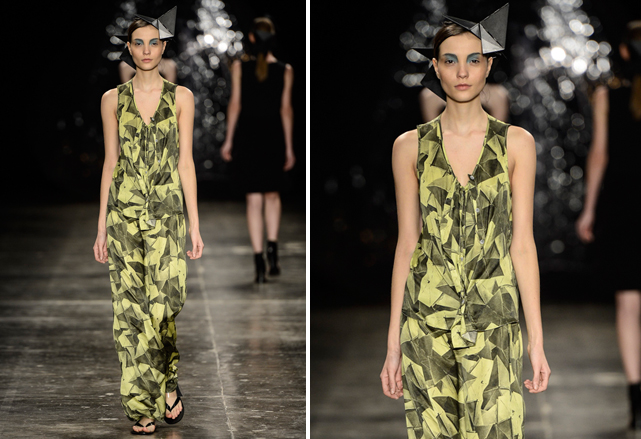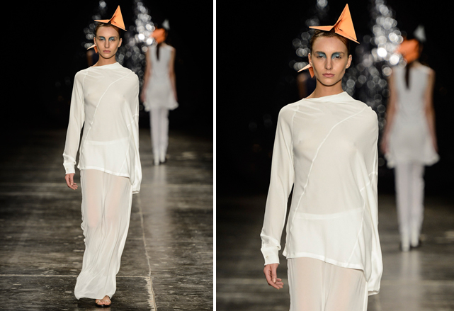Cortes assimétricos, silhueta alongada e fluida, e sobreposições inteligentes no styling – marcadas principalmente pelos vestidos usados sobre calças -, fazem a força da coleção. As delicadas transparências das peças lânguidas em chiffon e das camisas amassadas transmitem o conforto de um universo esportivo etéreo. Raquel encerra o release da coleção dizendo que “a coleção Lygia será um marco para a história da Uma”. Guardadas as proporções, ela parece estar certa.