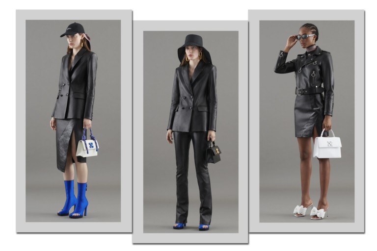 Blazeres, calças, saias e jaquetas ganham versões em couro na nova coleção da Off-White.