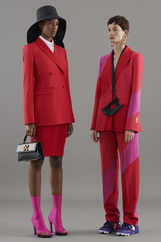 A mistura de rosa e vermelho já se tornou um clássico para os amantes de color blocking. No resort 2021 da Off-White, a combinação modernizou looks mais sociais.