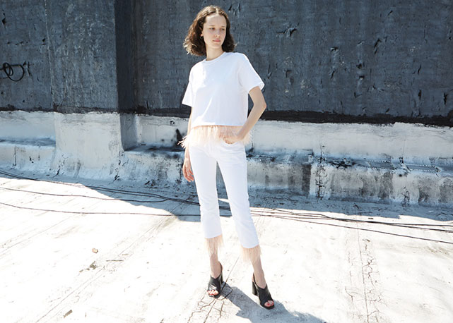 Básicos – mas com twist! Essa é a ideia da nova coleção criada entre as marcas Levi’s e Opening Ceremony. Nada mais clássico que aliar uma calça ou shorts jeans com uma t-shirt branca, certo? E porque não dar um upgrade nessas peças que salvam qualquer guarda-roupa? Foi pensando nisso que nasceu a linha ReWork, em que a Opening Ceremony, de Carol Lim e Humberto Leon, inseriram penas de avestruz em todos esses clássicos. O resultado? Peças must have.