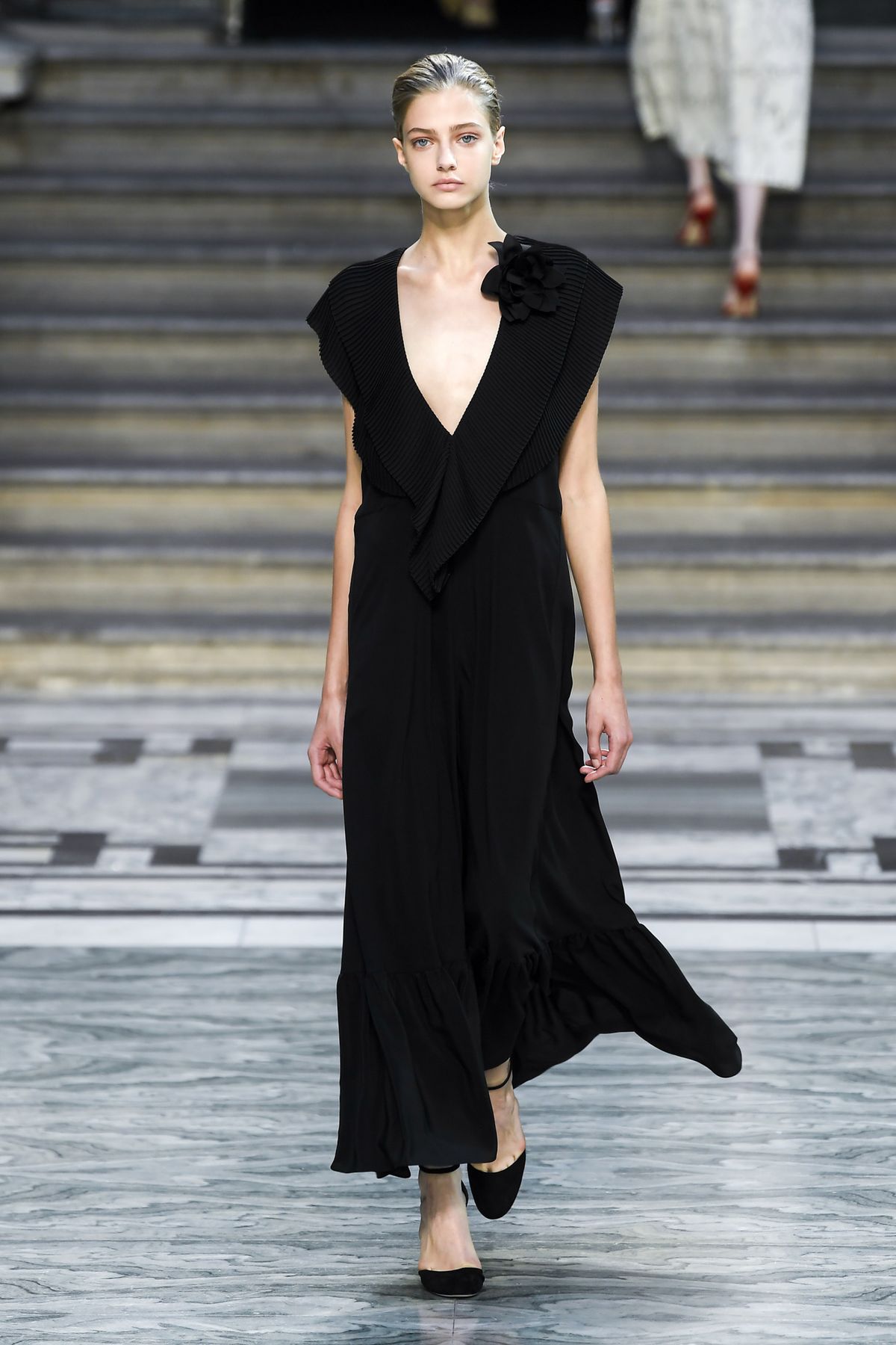 Mas existe um detalhe que nunca sai moda, que sempre representará luxo e poder: a cor preta é um must-have para qualquer fashionista! E não importa o tema que é apresentado em cada desfile, o tom marca presença de uma maneira, ou de outra. Por exemplo, a Erdem apresentou um verão 2020 repleto de inspirações vitorianas e cheio de cor. Mas, como é de costume, o look all black fez sucesso na passarela.