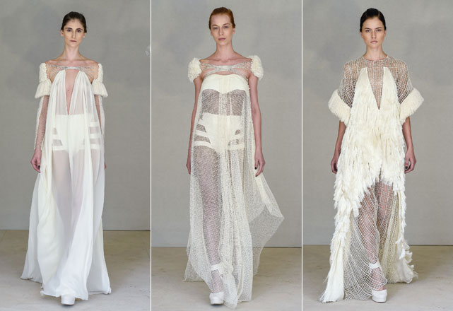 A estilista trabalha a sensualidade de forma etérea, num jogo de transparências e recortes estratégicos. O resultado é primoroso, como seus últimos desfiles. Uma moda única, artesanal e de assinatura precisa.