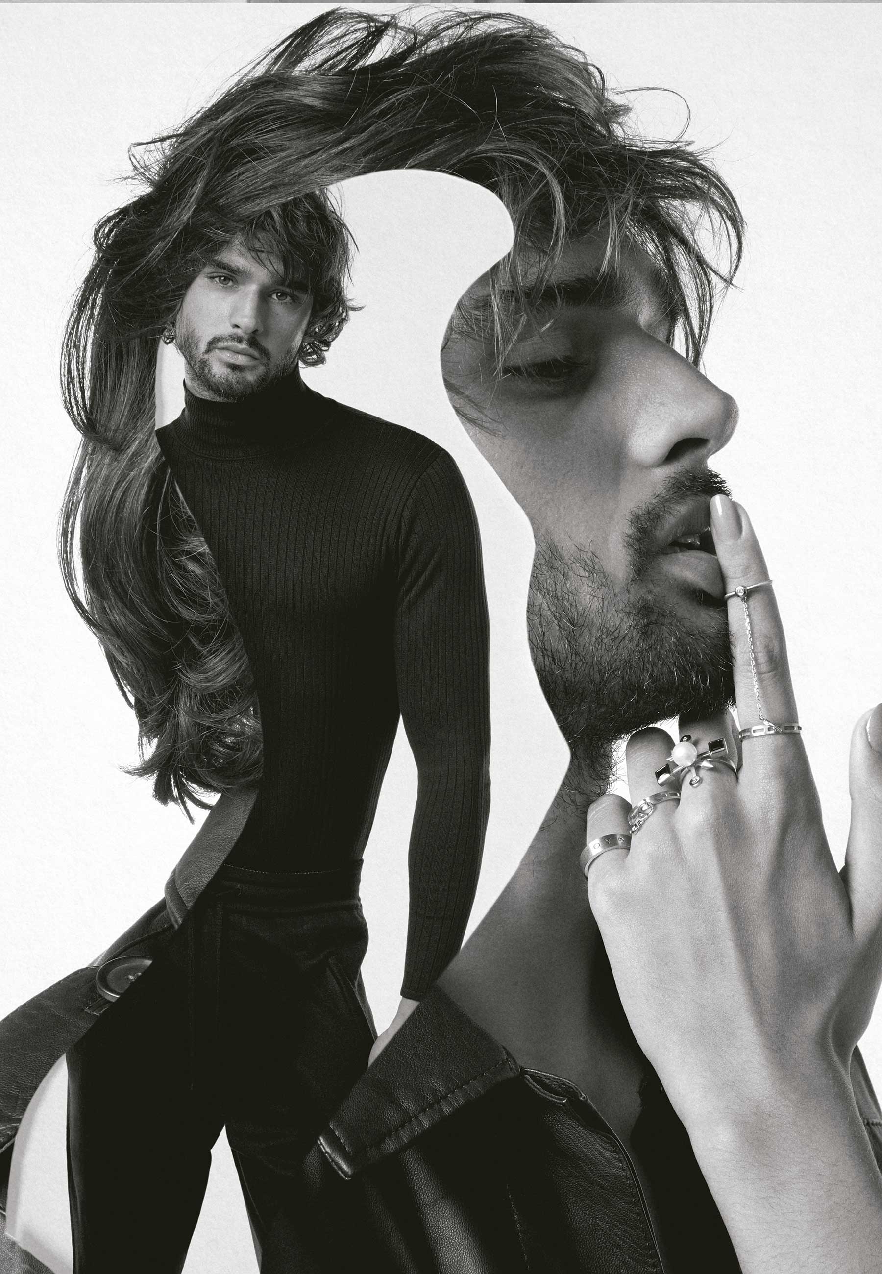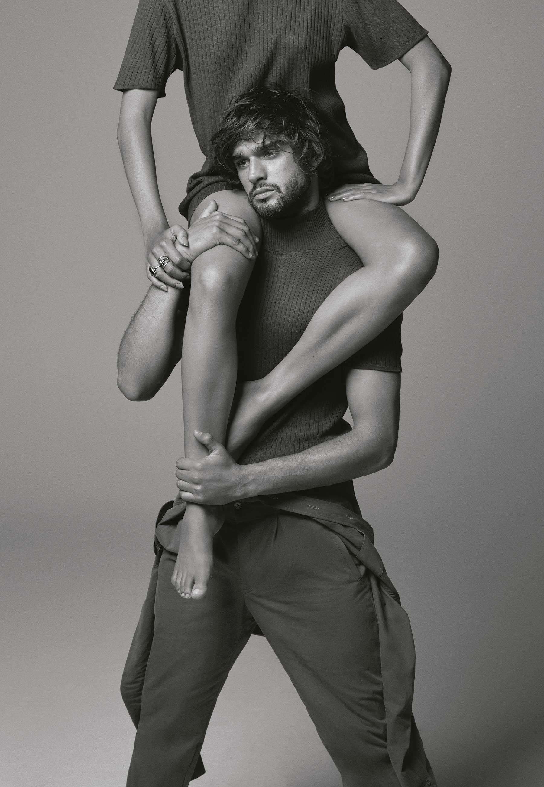 Marlon usa macacão Torinno. Ari usa, no dedo do meio, anel Valuta Seta em ouro com diamante e, no dedo anelar, anel Strap em ouro, diamantes, quartzo negro e pérolas, ambos Animale Oro – Foto: Eduardo Rezende, com edição de moda de Luis Fiod, beleza de Krisna Carvalho, tratamento de imagem de Helena Colliny e produção executiva de Zeca Ziembik e pedro Aboud
