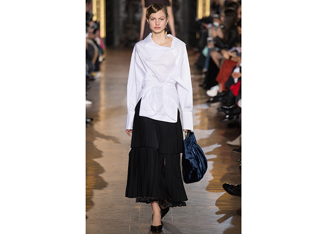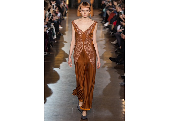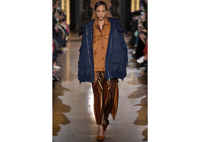 A coleção de inverno de Stella McCartney é um verdadeiro apanhado das tendências que estamos acompanhando ao longo da temporada. Formas espaçosas em jaquetas acolchoadas ou jeans, mangas descomunais nas camisas e máxi suéteres, vestidos e saias plissadas com camadas, veludo molhado e efeito lingerie em camisolas e tops com detalhes rendados. Um combo interessante que mistura todos estes elementos de forma elegante e moderna.