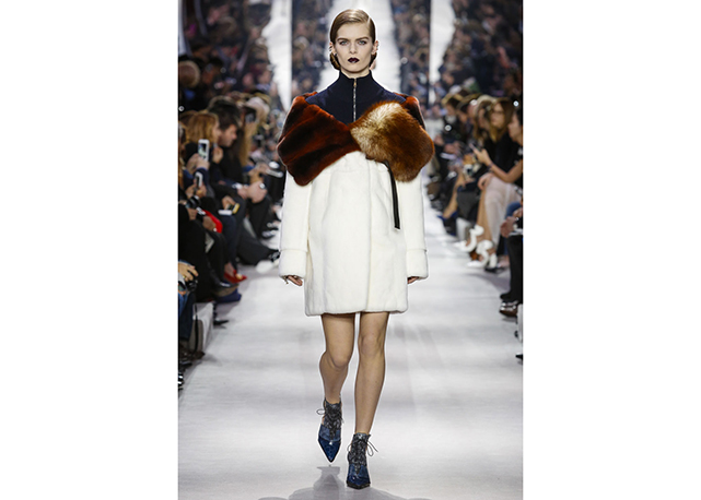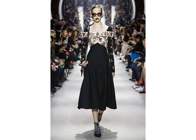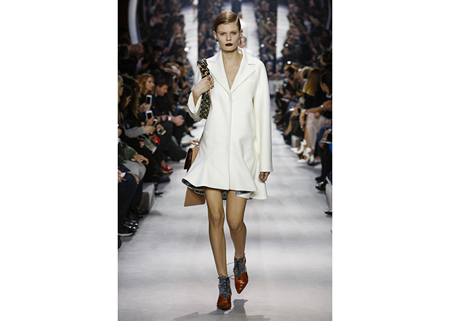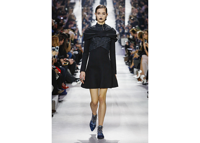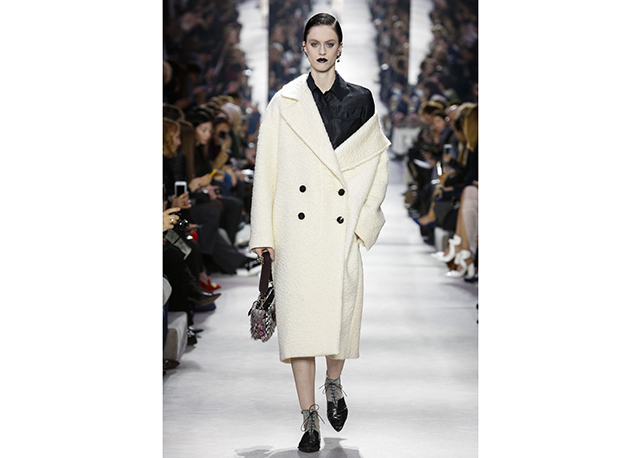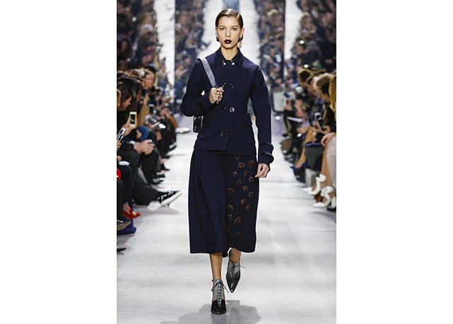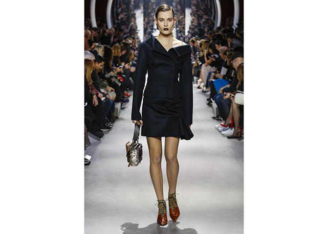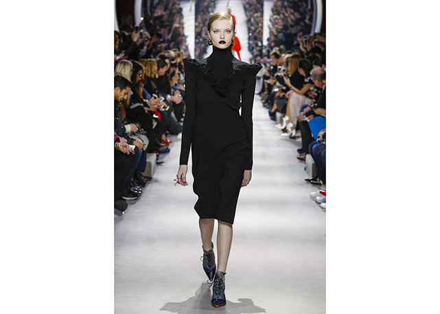 Não há muito o que dizer sobre o inverno 2016 da Dior. A coleção é correta, bem alinhada aos códigos da marca e às vontades do momento. Traz a alfaiataria superfeminina da dior em ternos cinturados com saias lápis e barras com babados, maxicasacos com golas de pele sobre blusas de gola rulê, vestidos com bordados de miniflorais e mangas caídas dos ombros (como na alta-costura) e uma interessantes oferta de tricôs com formas um tanto inovadoras (de longe, as melhores e mais interessantes peças do desfile).