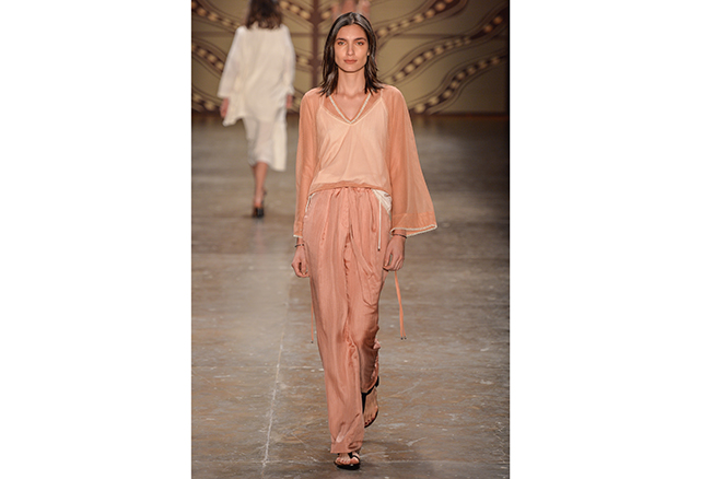 A Apartamento 03 desfilou modelos deluxe de seda em tons pálidos. Já a estreante A.Brand usou o mesmo corte e a mesma matéria-prima, mas com capricho nas estampas e aplicações. Lilly Sarty se apropriou da fluidez e do caimento dos pj’s, enquanto Uma Raquel Davidowicz e Juliana Jabour ficaram na fronteira entre o lounge e o esporte. Pequenas variações do mesmo tema com um grande objetivo em comum: deixar todo mundo bem à vontade.