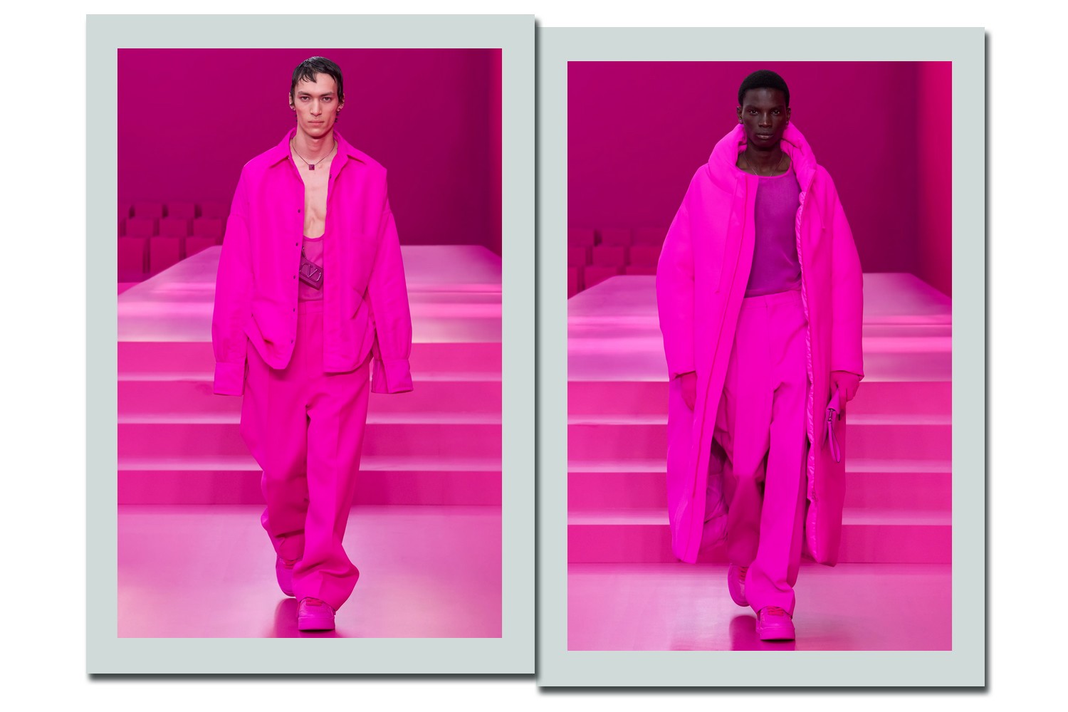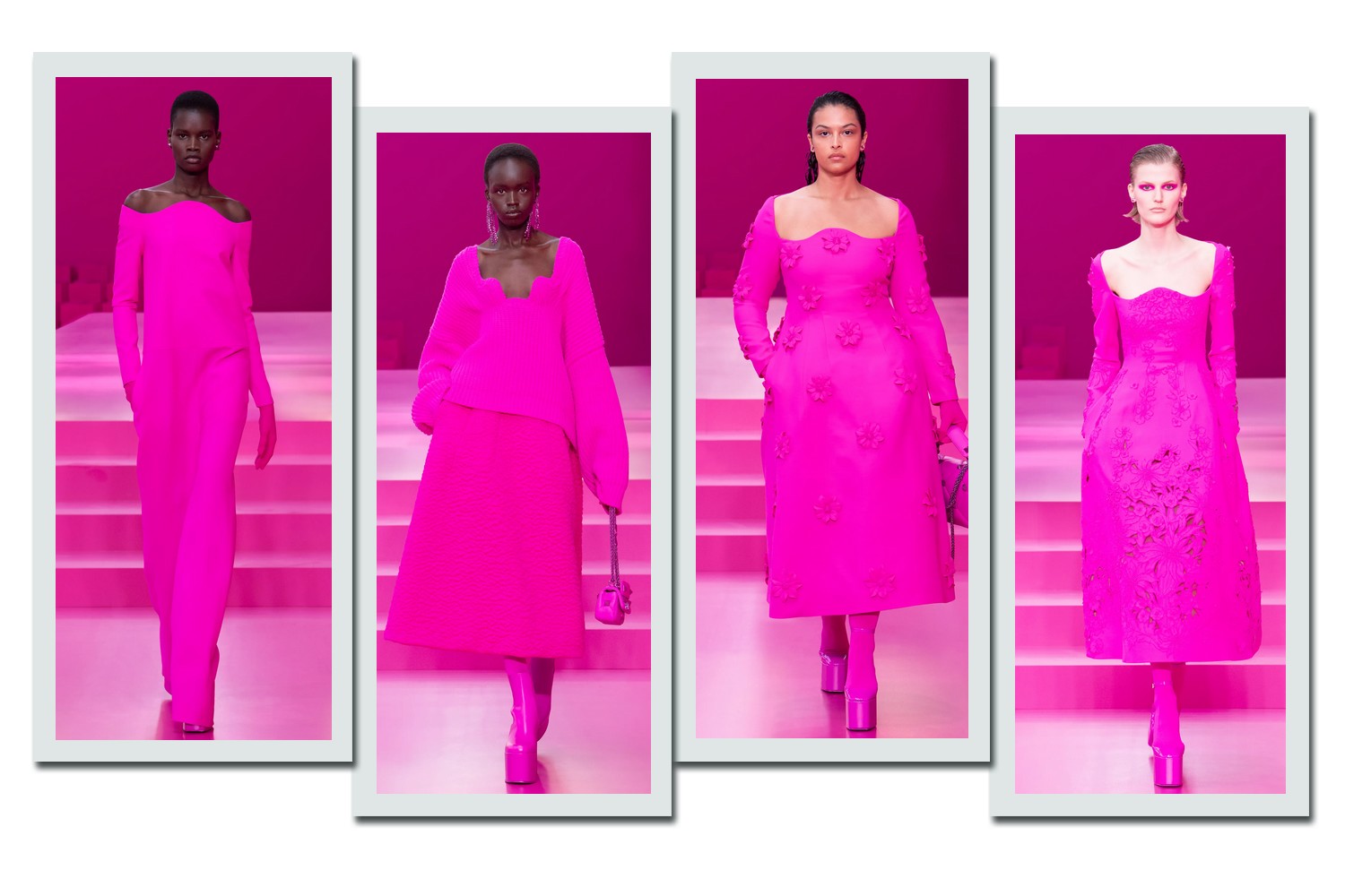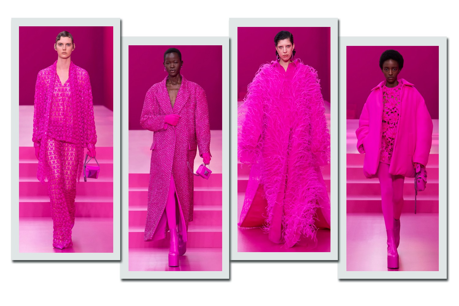 Nas divulgações do desfile de inverno 2022 da Valentino, Pierpaolo Piccioli prometeu infinitas possibilidades envoltas em um mesmo tom – e ele cumpriu. O pink, cor que descreveu como tom da liberdade, individualidade, curiosidade e invenção, foi o grande protagonista da coleção e tingiu do cenário à grande maioria das peças. A cor foi criada pelo designer em parceria com a Pantone e recebeu o nome “Pink PP”, prometendo ser a próxima tendência da temporada.