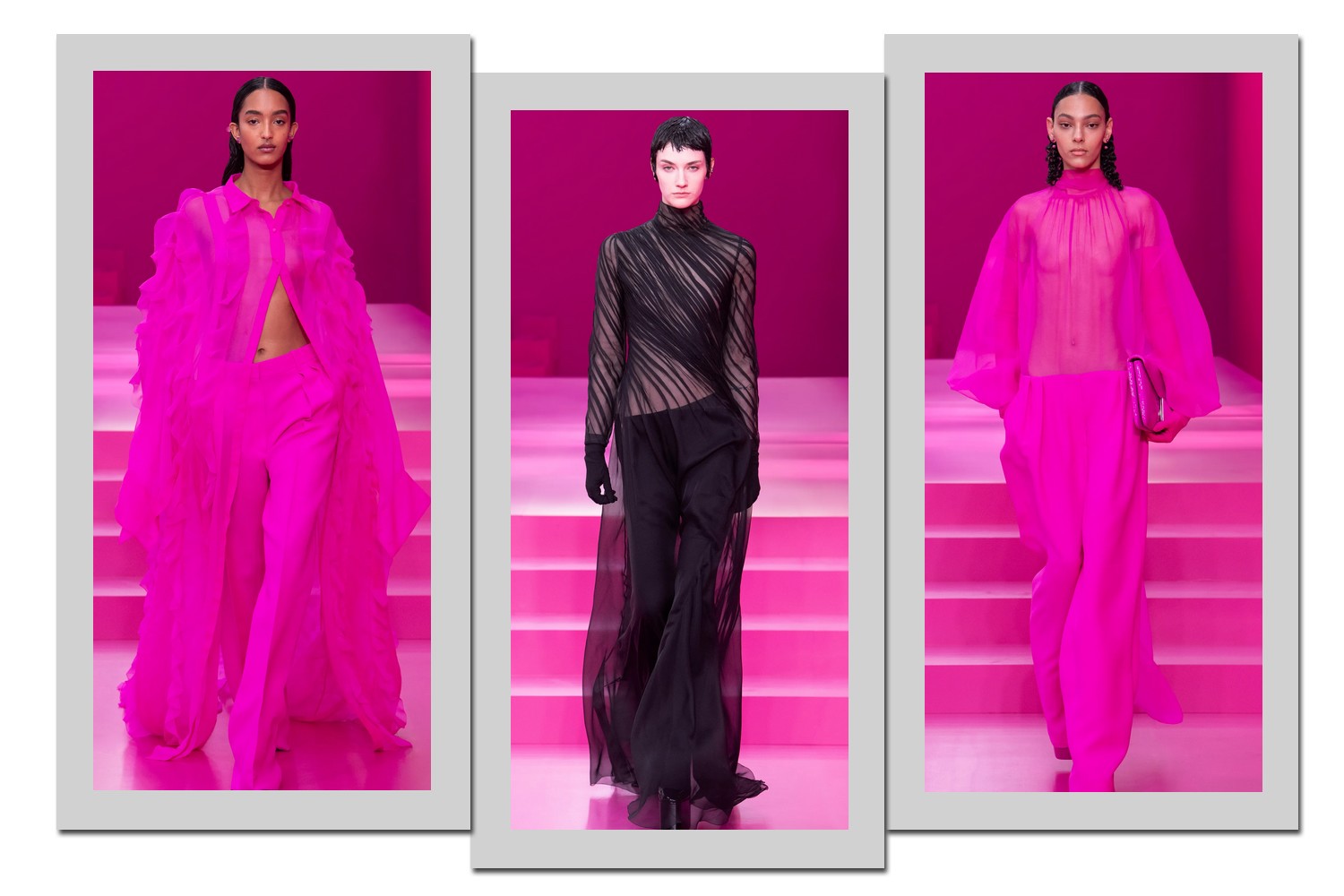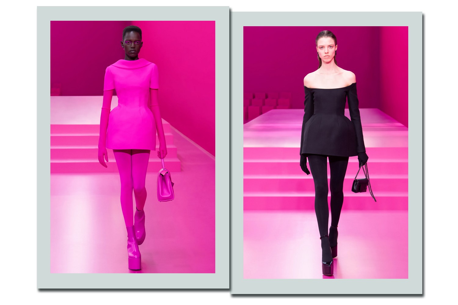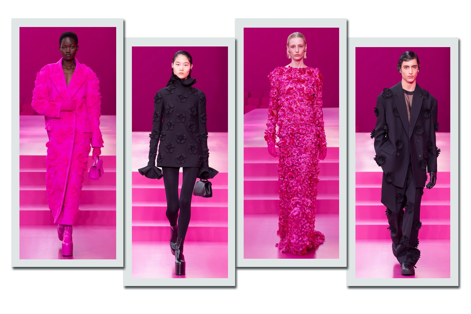 Nas divulgações do desfile de inverno 2022 da Valentino, Pierpaolo Piccioli prometeu infinitas possibilidades envoltas em um mesmo tom – e ele cumpriu. O pink, cor que descreveu como tom da liberdade, individualidade, curiosidade e invenção, foi o grande protagonista da coleção e tingiu do cenário à grande maioria das peças. A cor foi criada pelo designer em parceria com a Pantone e recebeu o nome “Pink PP”, prometendo ser a próxima tendência da temporada.