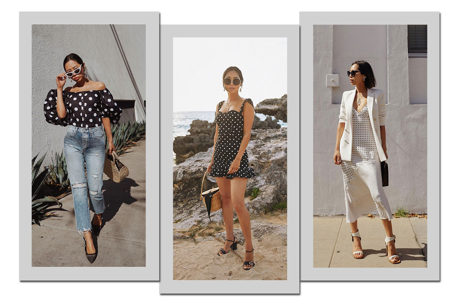 Aimee Song ama o poá! De blusa de seda ombro a ombro, vestidinho para praia ou vestido fluido para uma ocasião mais séria, a blogueira abusa da estampa.