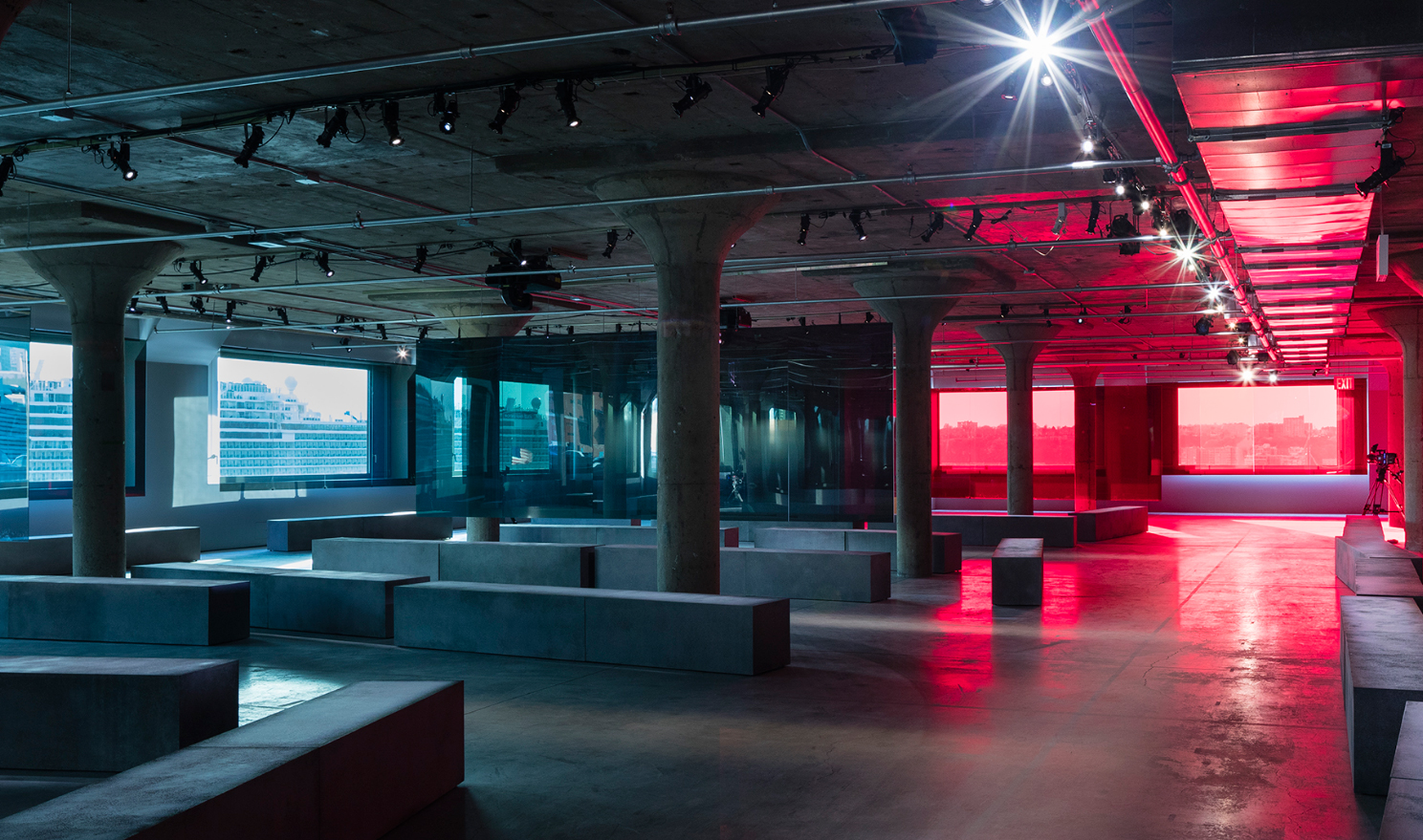 O QG da Prada em Nova York, desenhado pelo escritório de arquitetura Herzog & de Meuron, foi o cenário do desfile da grife. “O show acontece no 7º andar. A estrutura nua do prédio fica à mostra, com suas pilastras expressivas: um espaço escultural lindo. Deixamos tudo muito vazio para o desfile. Os únicos elementos adicionados foram os painéis flutuantes e semitransparentes que refletem a vista da cidade”, resumiu a grife em seu perfil no Instagram.