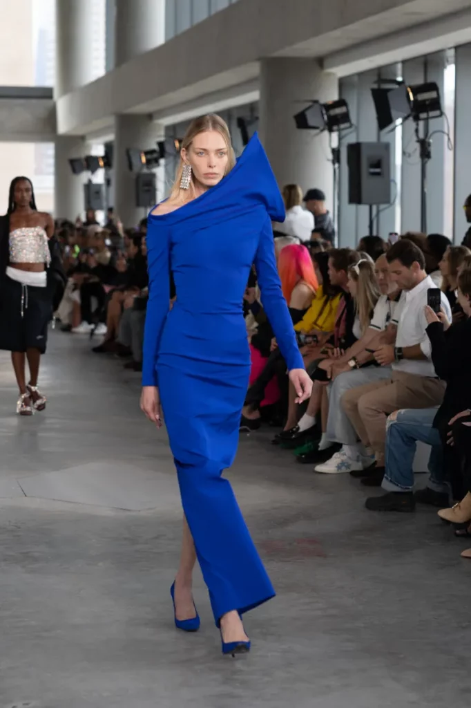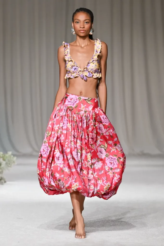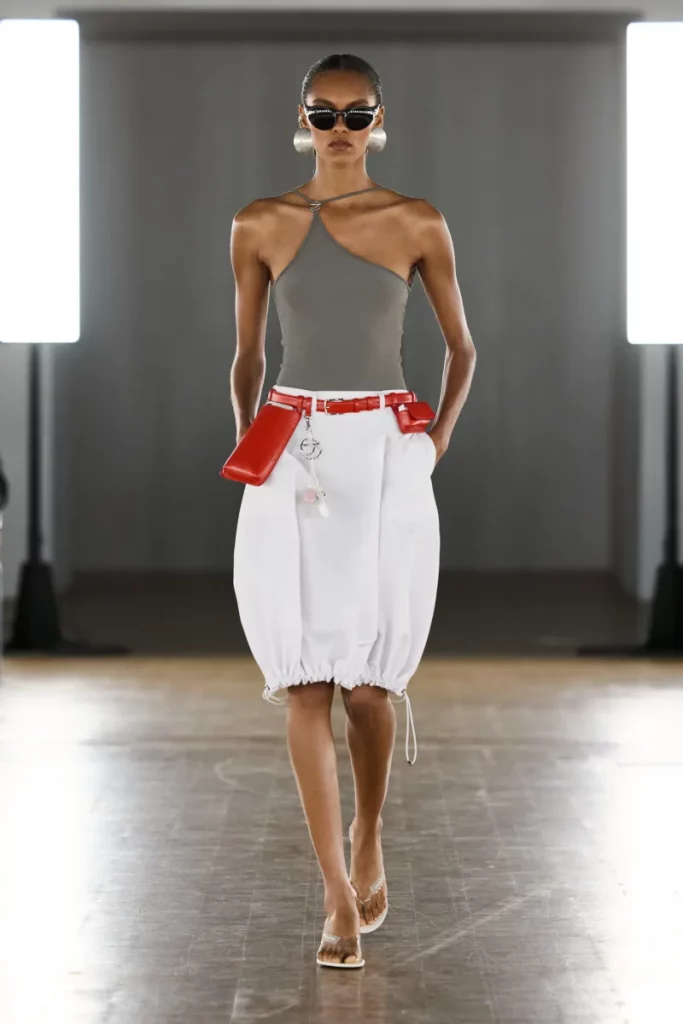 Os quadris marcados, vistos em coleções como Erdem, Mugler e Giuseppe di Morabito, retomam uma referência histórica do vestuário — quando a forma feminina era acentuada por armações e anquinhas no século XVIII, símbolo de status e feminilidade. Já os balonês, que dividem opiniões, retornam repaginados em marcas como PartBo, Vivetta e Coperni, equilibrando drama e leveza.
