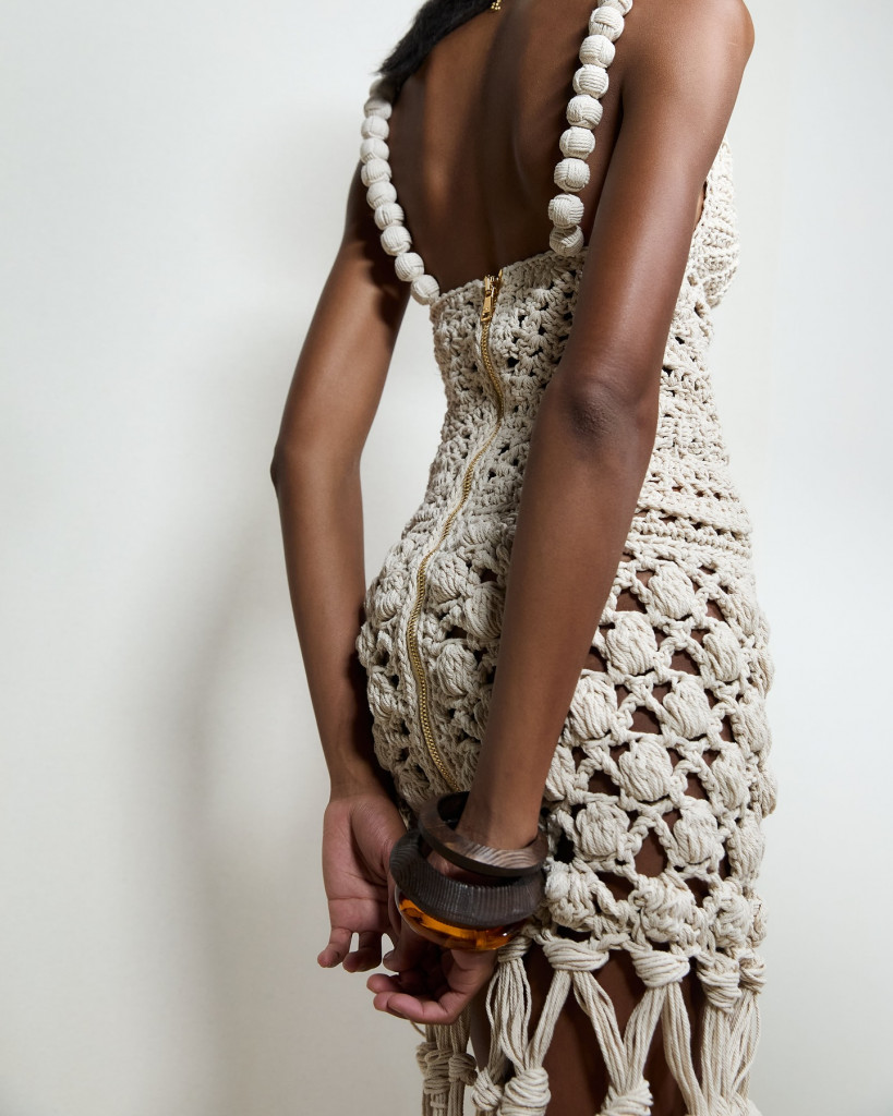 As franjas também voltam com força — não apenas como detalhe decorativo, mas como movimento. Elas trazem fluidez, ritmo e leveza, traduzindo bem o espírito livre da estação. Surgem em diferentes materiais, como couro, fios de algodão e até versões que lembram penas e plumas, dominando passarelas e ruas. Estão em bolsas, sapatos e vestidos, em um retorno que mistura o boêmio e o sofisticado.