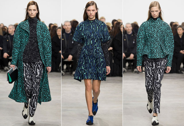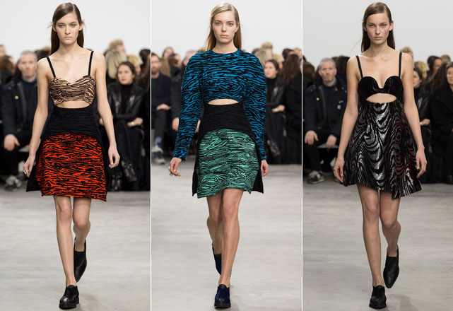 Três looks selecionados do inverno 2015 de Proenza Schouler – Fotos: Getty Images