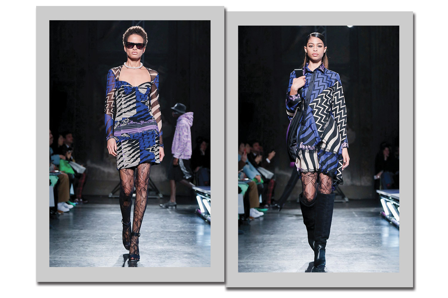 Christelle revisita os arquivos de estampas da marca e traz para elas um mood de streetwear, com destaque para o retorno de duas prints apresentadas por Pucci na “Palio Collection”, em 1957: a “Lupa” e a “Selva”.
