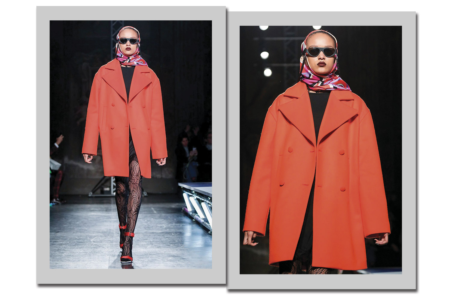 O laranja sempre foi uma das cores preferidas de Emilio Pucci, e está presente em todas as coleções da marca italiana até hoje. Neste inverno 2020, ela aparece forte em um belo sobretudo.