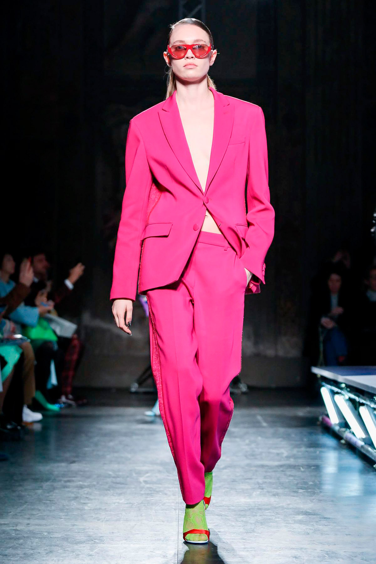 Quem pensa que a Emilio Pucci só faz estampas está muito enganado! A label tem uma ótima alfaiataria monocromática, como o terno pink acima.