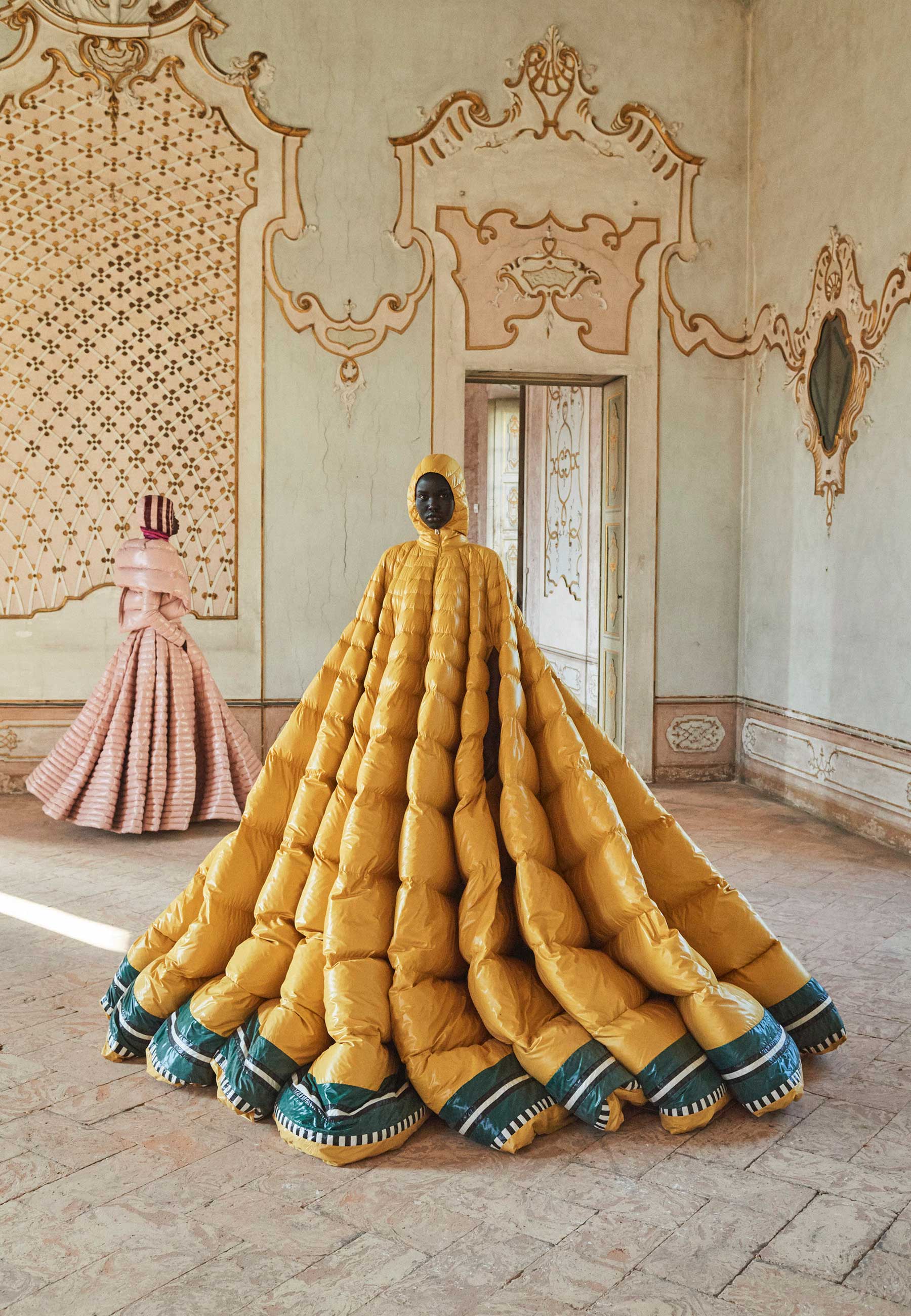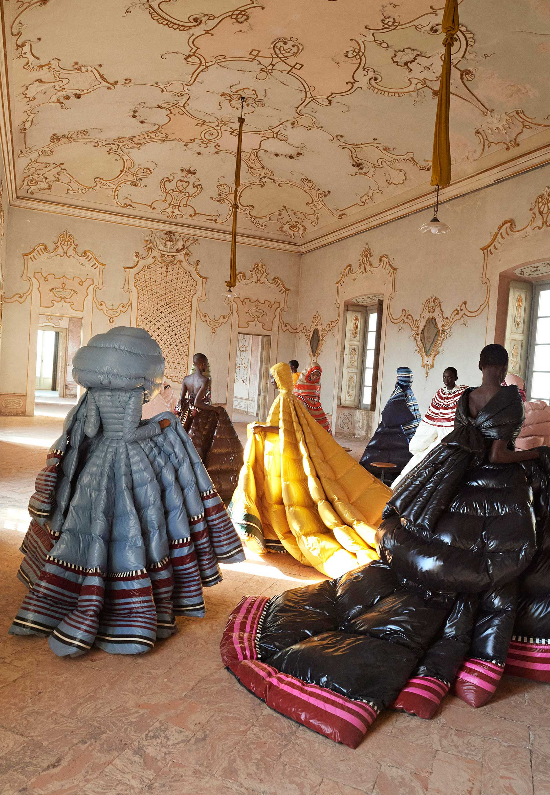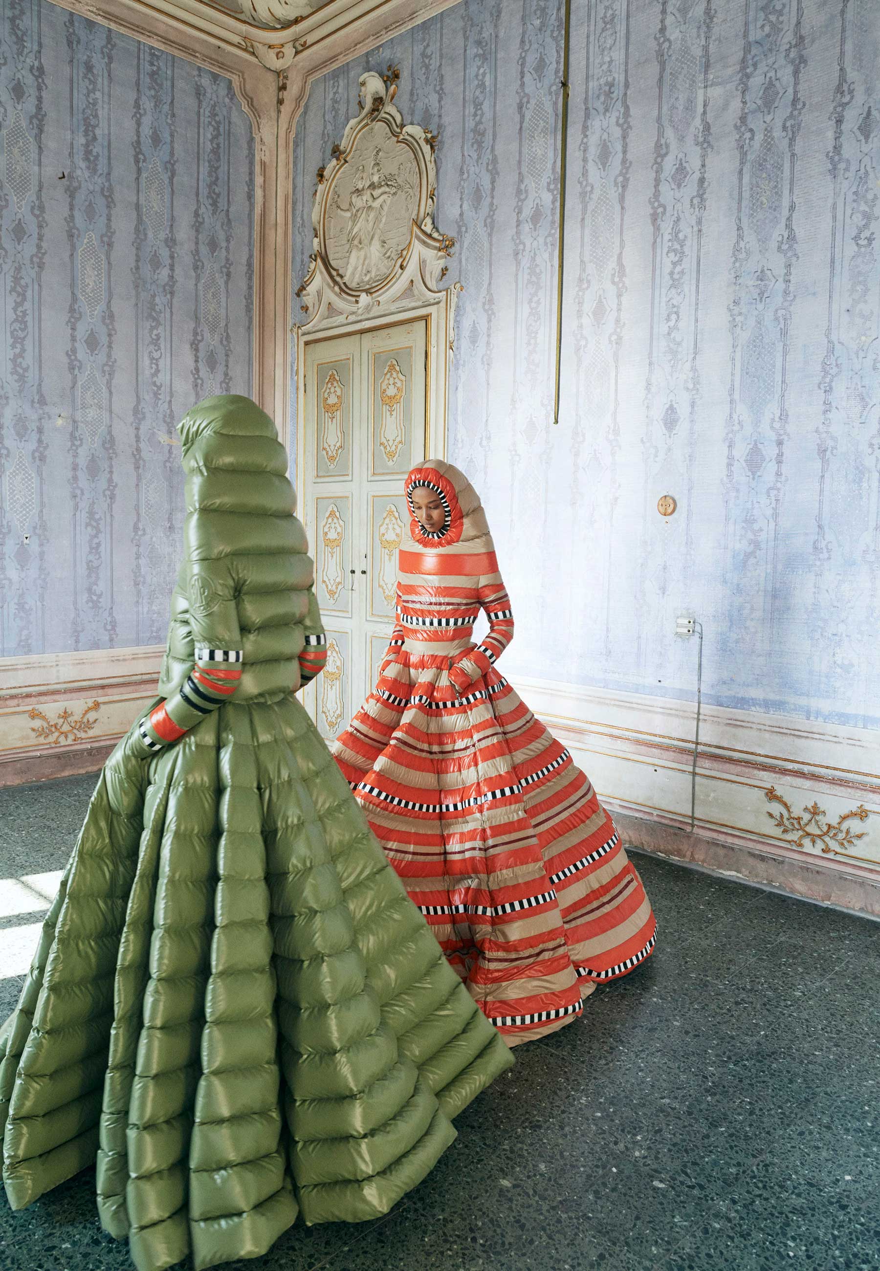 Moncler e Piccioli, estilista da maison valentino, transformaram as puffer jackets em um trabalho de couture impressionante, com uma infinidade de cores vivas – prontas para as mais geladas das viagens.