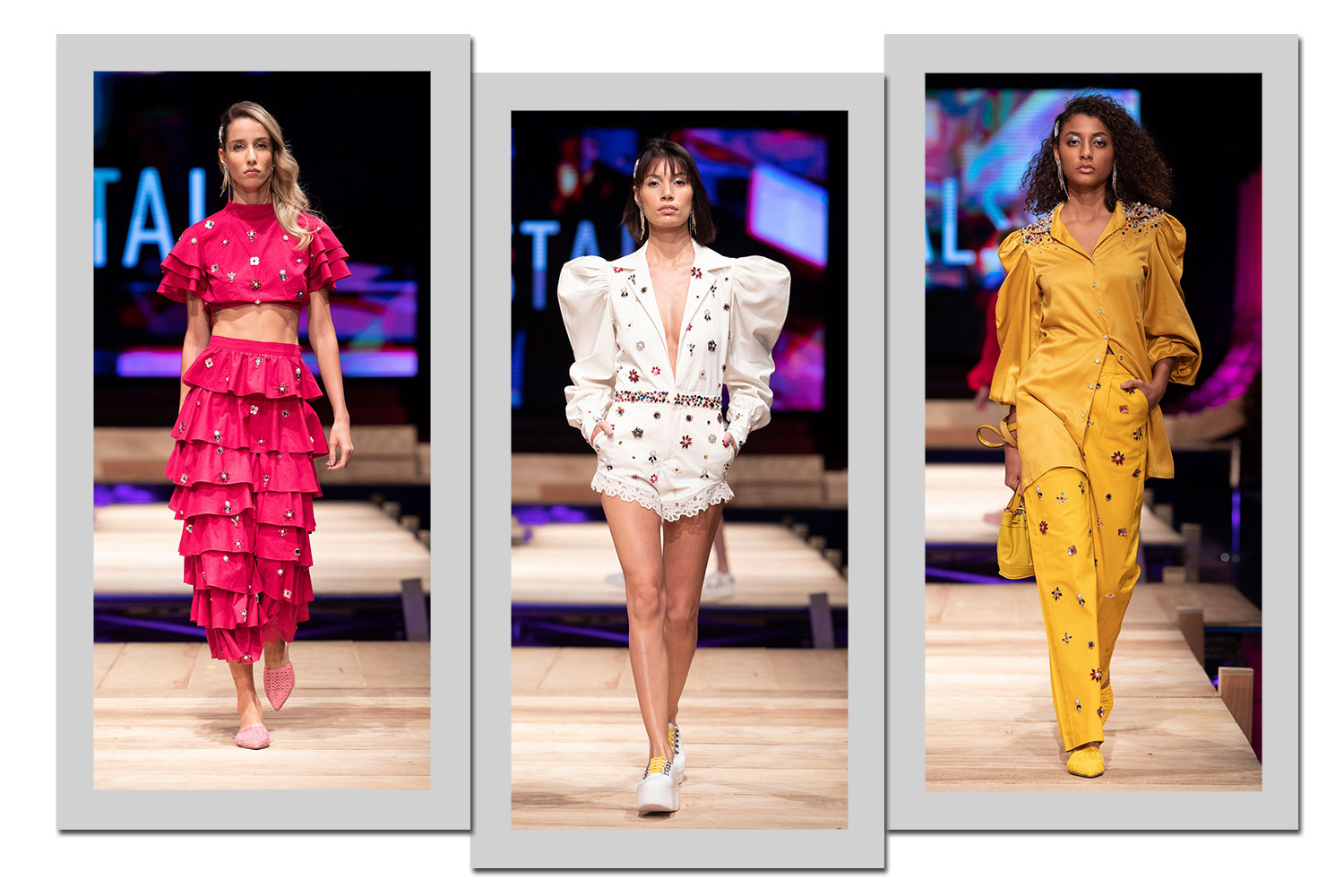 Intitulada “Crystals”, a coleção de Denise Valadares em colaboração com o stylist Albert Franconaid apostou no universo dos cristais para construir seu verão 2020. A lese bordada, mangas bufantes e as saias rodadas trouxeram para passarela a vibe da memória afetiva da dupla. O pink e amarelo marcaram a coleção fazendo justiça às trends vistas nas temporadas de moda internacionais.