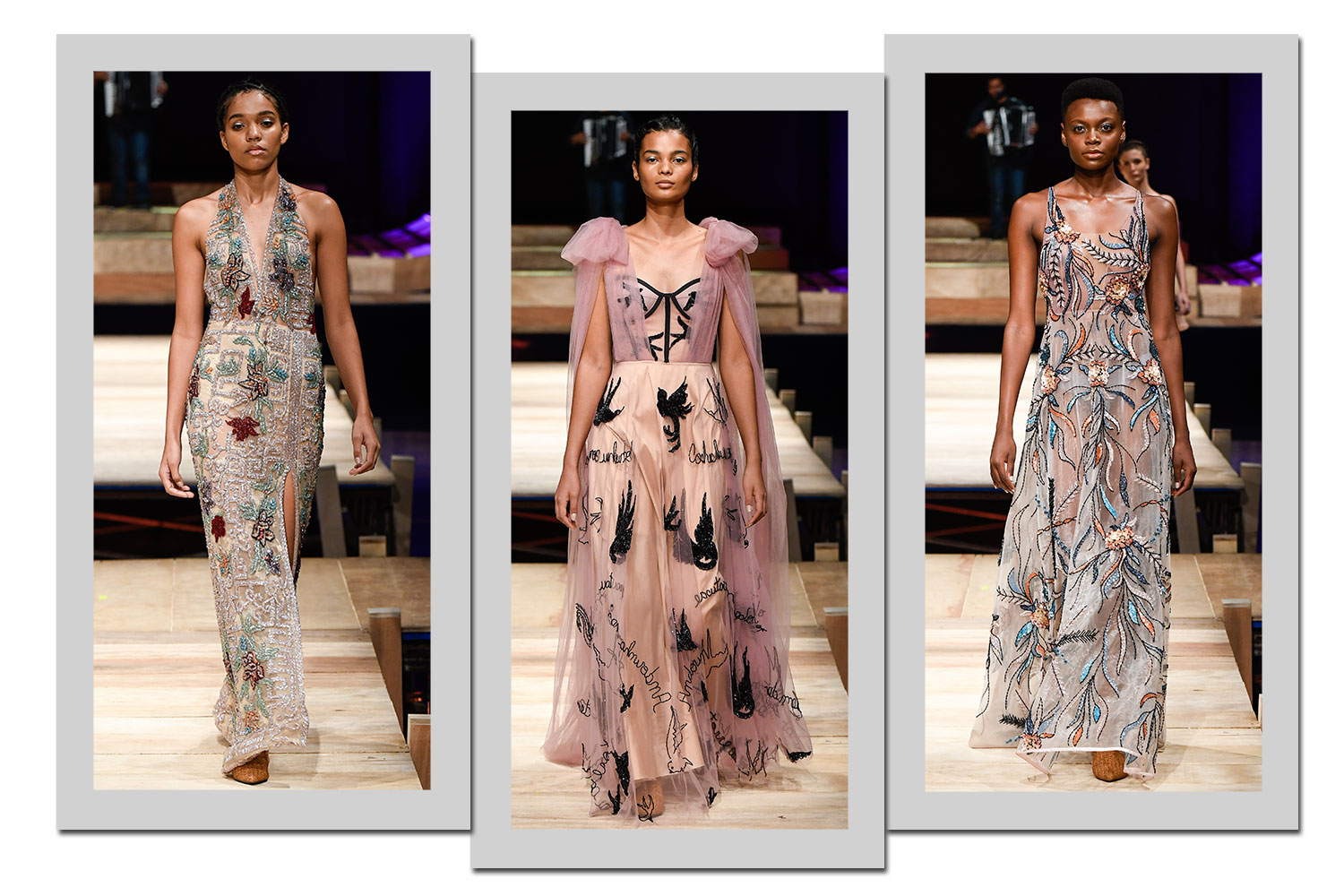 “Minha história com a moda e com a arte vem desde criança. E nessa coleção eu quis contar um pouco sobre a minha história. Tenho um caderno de poesias ilustradas, com trabalhos de Vinícius de Moraes e Carlos Drummond de Andrade. Esse caderno foi o ponto de partida da inspiração da coleção”, disse a estilista Raquel de Queiroz. Suas peças são dignas dos tapetes vermelhos internacionais. E para enriquecer ainda mais seu verão2020 no Minas Trend, o desfile aconteceu ao som de Elba Ramalho, ícone da cultura brasileira.