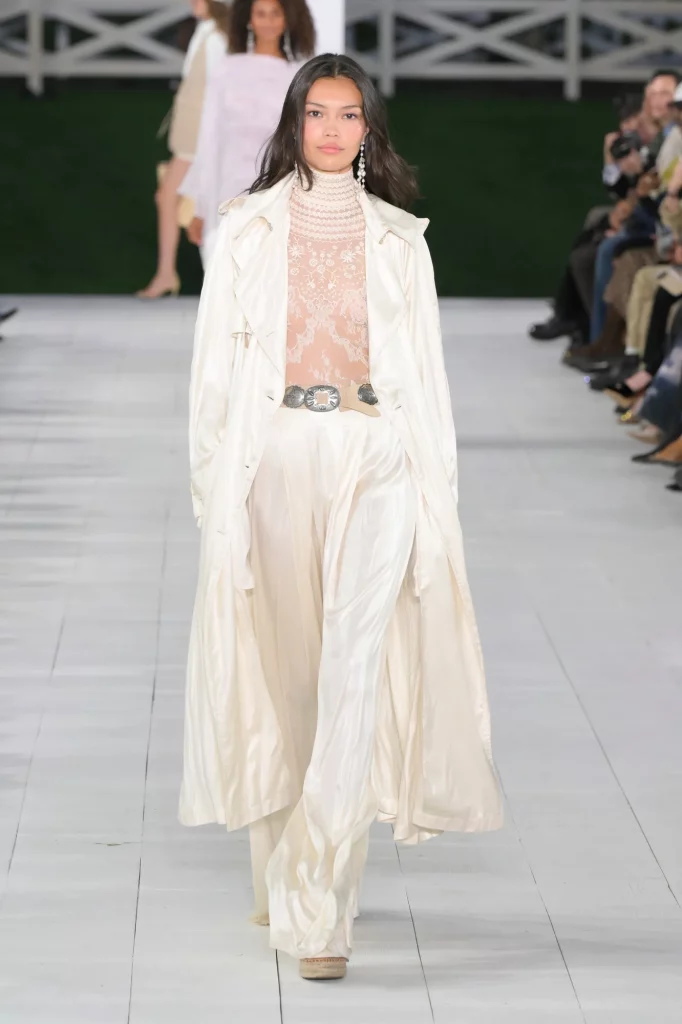 A mistura de referências é traduzida em looks que unem regatas a bordados extravagantes, alfaiataria a longas saias fluidas, tricô e crochê a um vestido com mais de 200 mil pérolas aplicadas à mão. Ou seja, Lauren acaba de renovar o conceito de beach luxury.