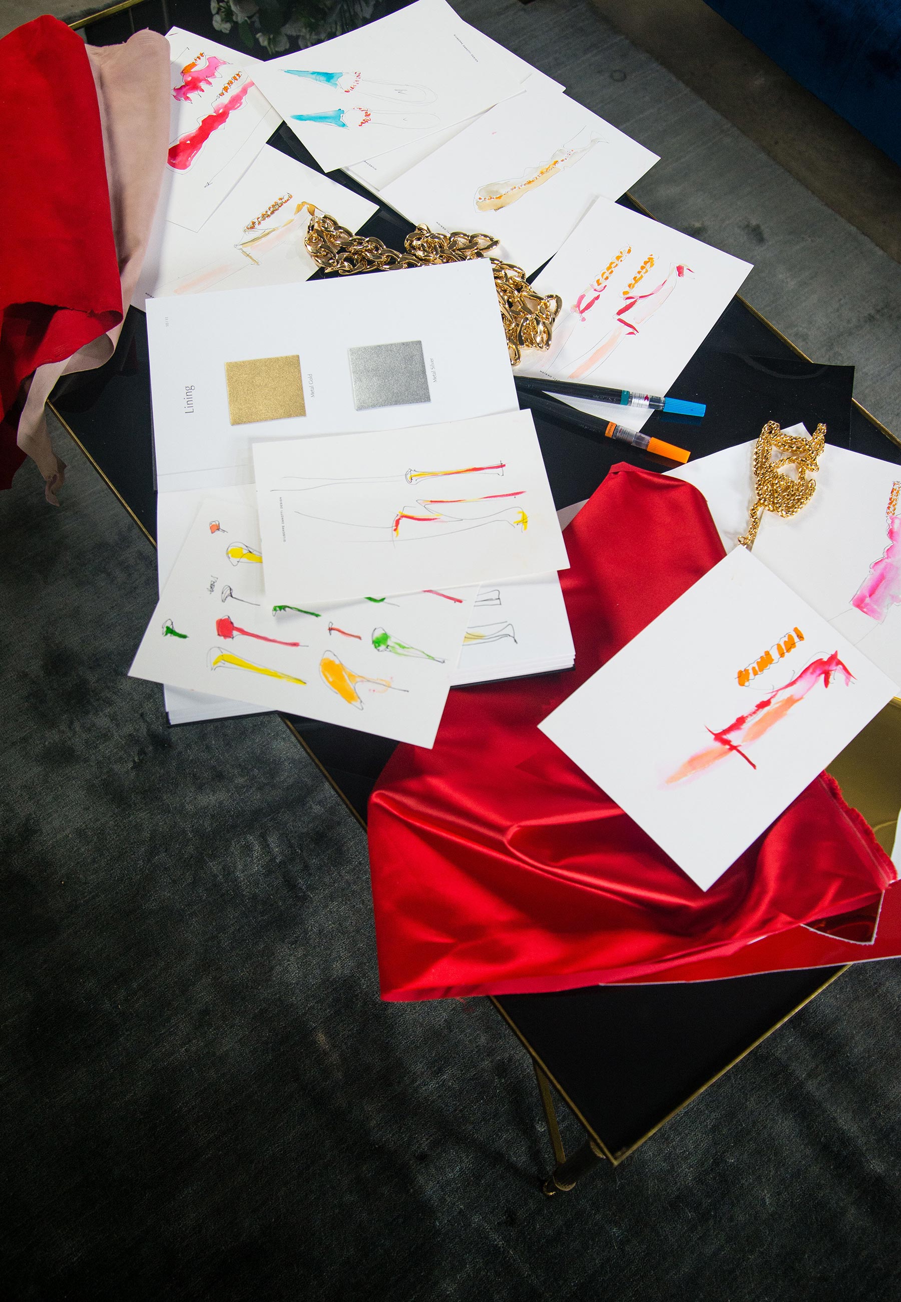 A coleção Giuseppe for Rita Ora terá modelos de slides, estiletos, mules, botas peep-toe e over-the knee. Os modelos são decorados com correntes douradas, que foram um pedido especial de Rita.