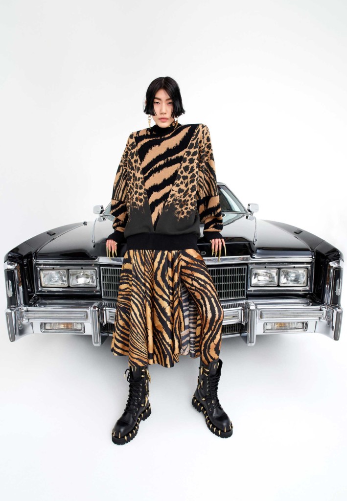 Neste lançamento, Puglisi mergulhou nos arquivos da marca em Florença, dando prioridade ao recorte entre 1998 a 2006, os “anos de ouro” da Cavalli no mercado norte-americano – que segue sendo o principal da marca. Tigres e onças – as estampas aparecem como já era de se esperar na apresentação. Veja 10 looks propostos abaixo:
