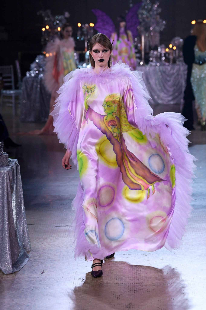 Para o inverno 2023, as estilistas e irmãs Kate e Laura Mulleavy, fundadoras da Rodarte, escalaram a própria mãe, que é artista, para desenhar um conto de fadas para a marca. Essas ilustrações lúdicas foram usadas em toda a coleção sobre caftans esvoaçantes e vestidos com babados que cruzaram a passarela da semana de moda de Nova York.