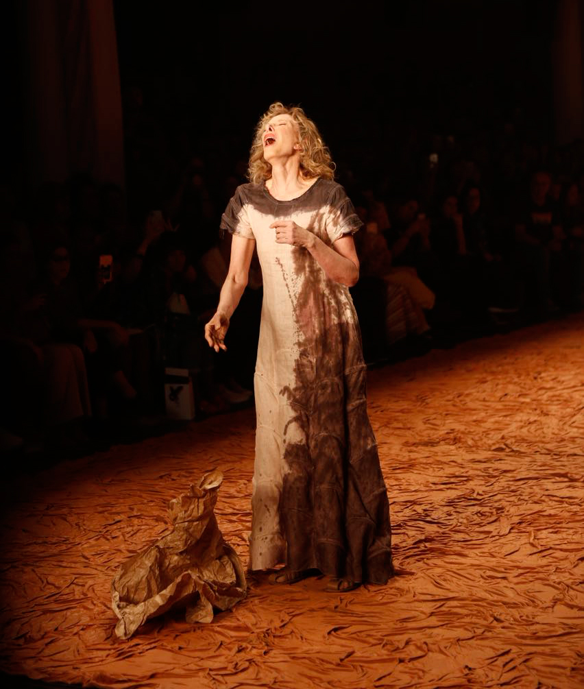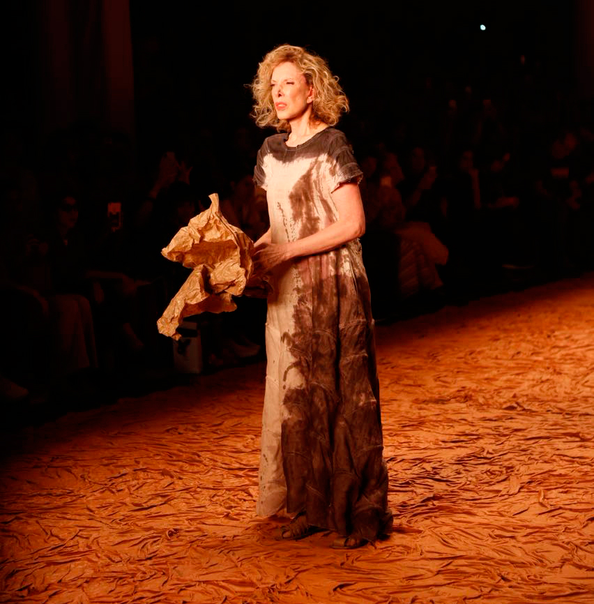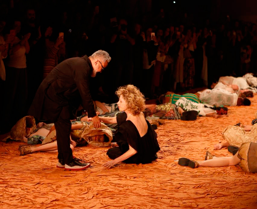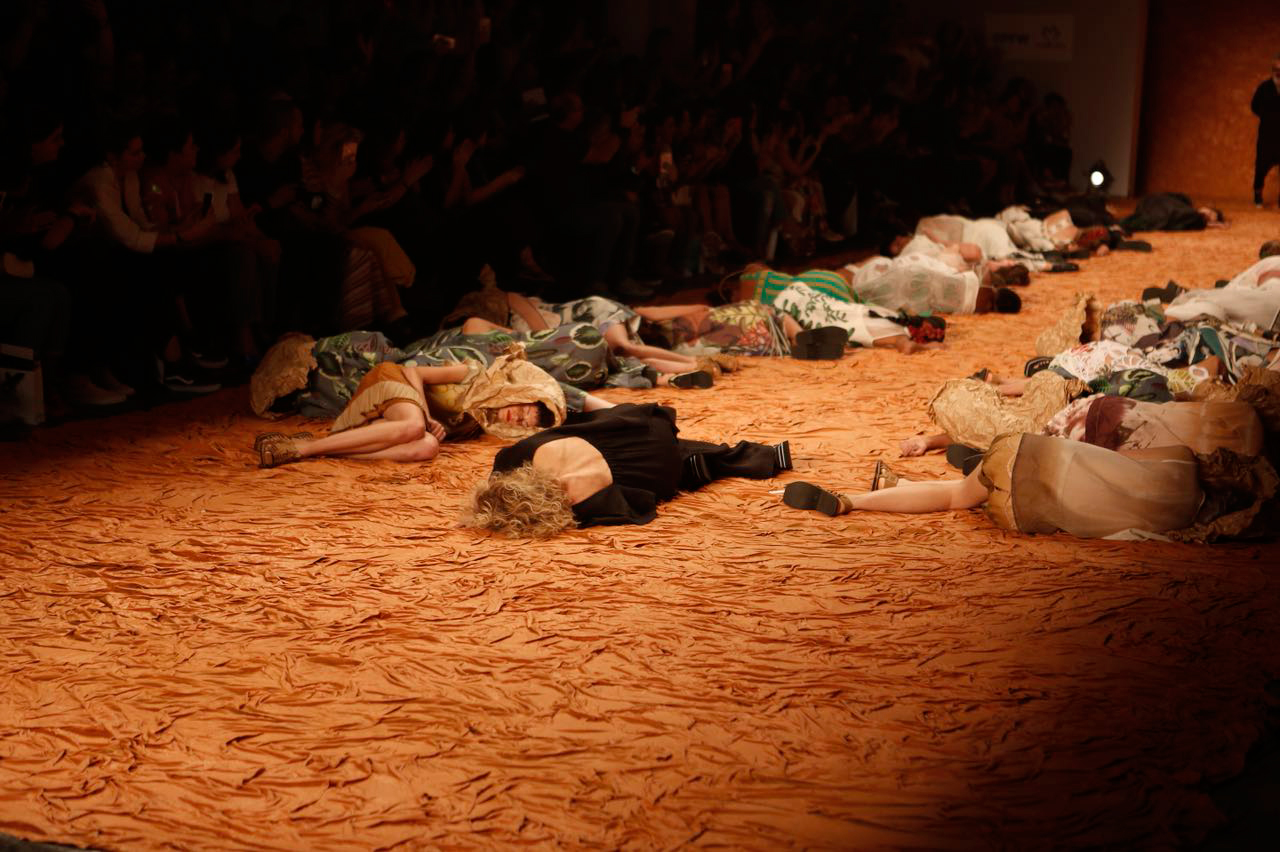 A atriz e apresentadora Marília Gabriela protagonizou o desfile, fazendo ao final uma performance em que caminhou no meio de um corredor de modelos deitadas no chão, em posição fetal, expressando a dor dos moradores da região.