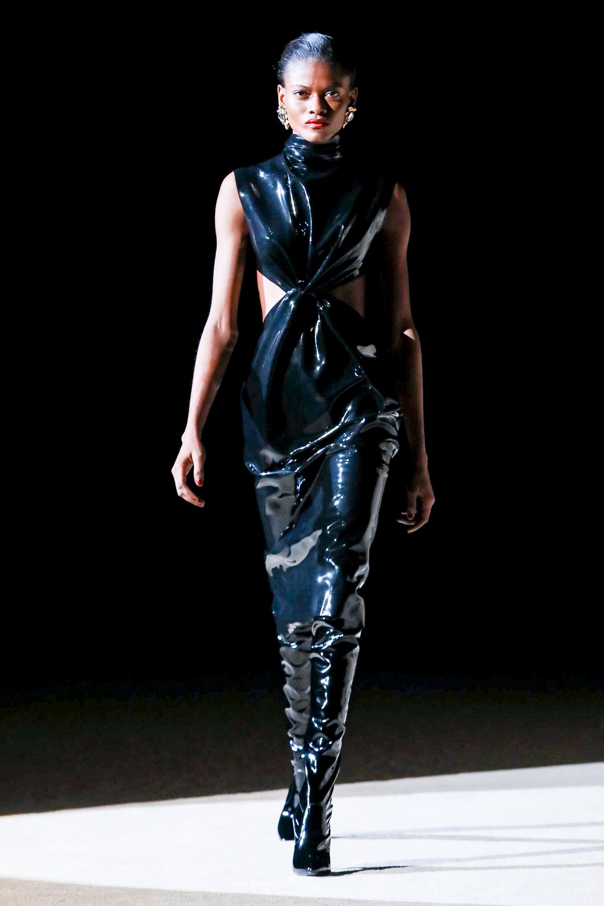 Dando ares de dominatrix e mais poder às mulheres, o látex reinou na coleção da marca.