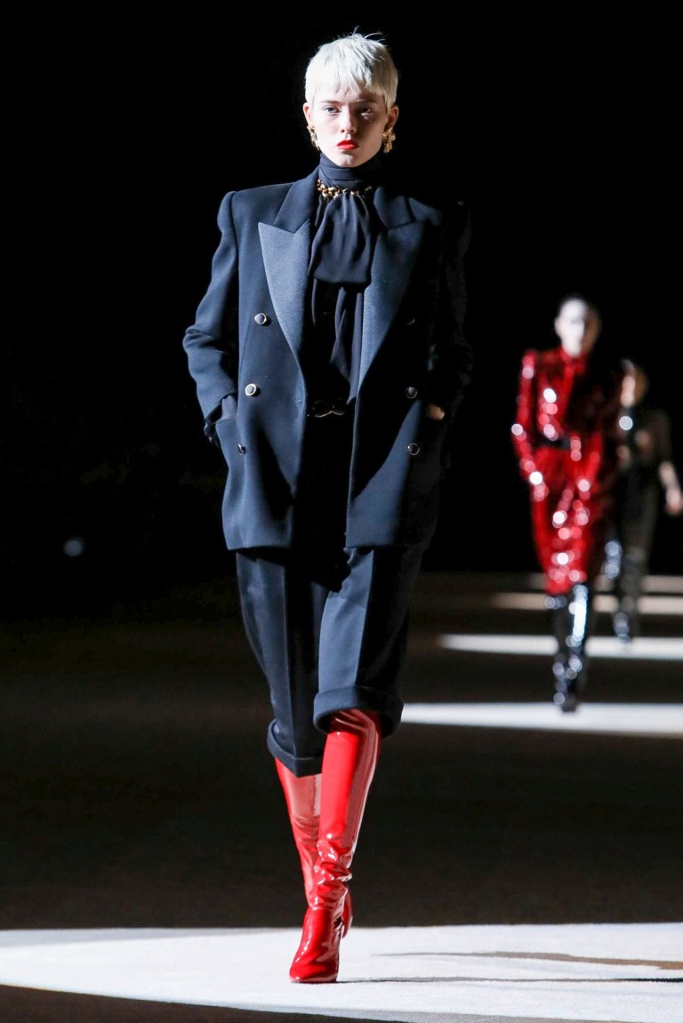 Encerrando o primeiro dia da semana de moda de Paris aos pés da Torre Eiffel, Anthony Vaccarello, estilista à frente da Saint Laurent, não deixa nada a desejar. Pelo contrário, leva a plateia ao êxtase com a silhueta 90’s que explora em looks sexy e extravagantes. A combinação de paletós e leggings é a máxima pós-streetwear. Sim, we vote for elegance!