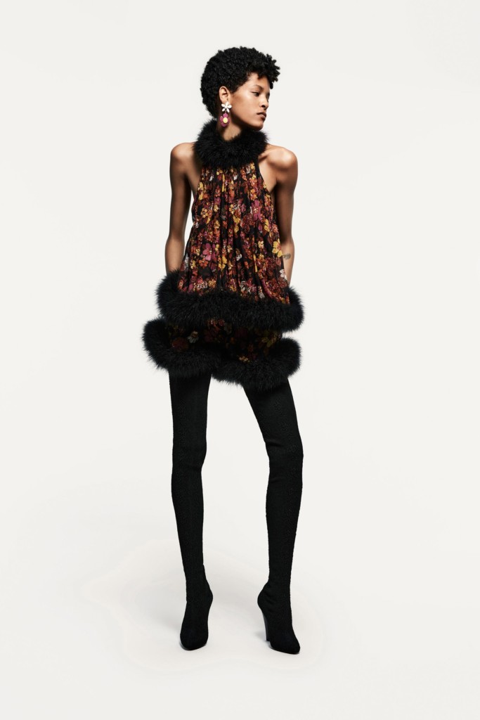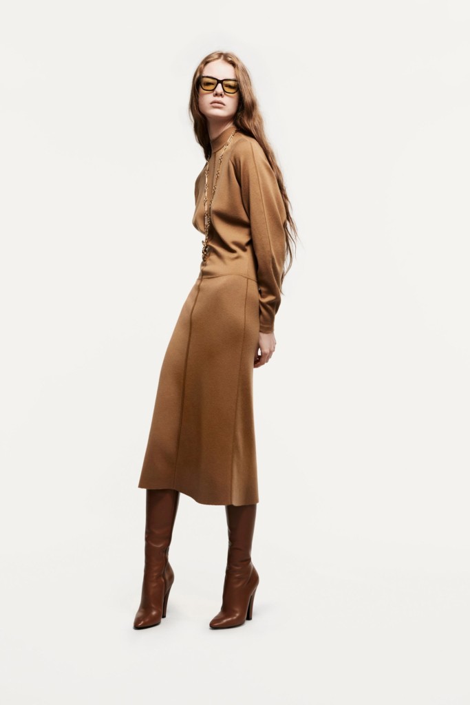 Vacarello substitui o latex por um jersey pesado e com isso cria um visual mais comfy e menos high-tech. O jersey aparece em um vestido usado com botas nas cores das dunas.