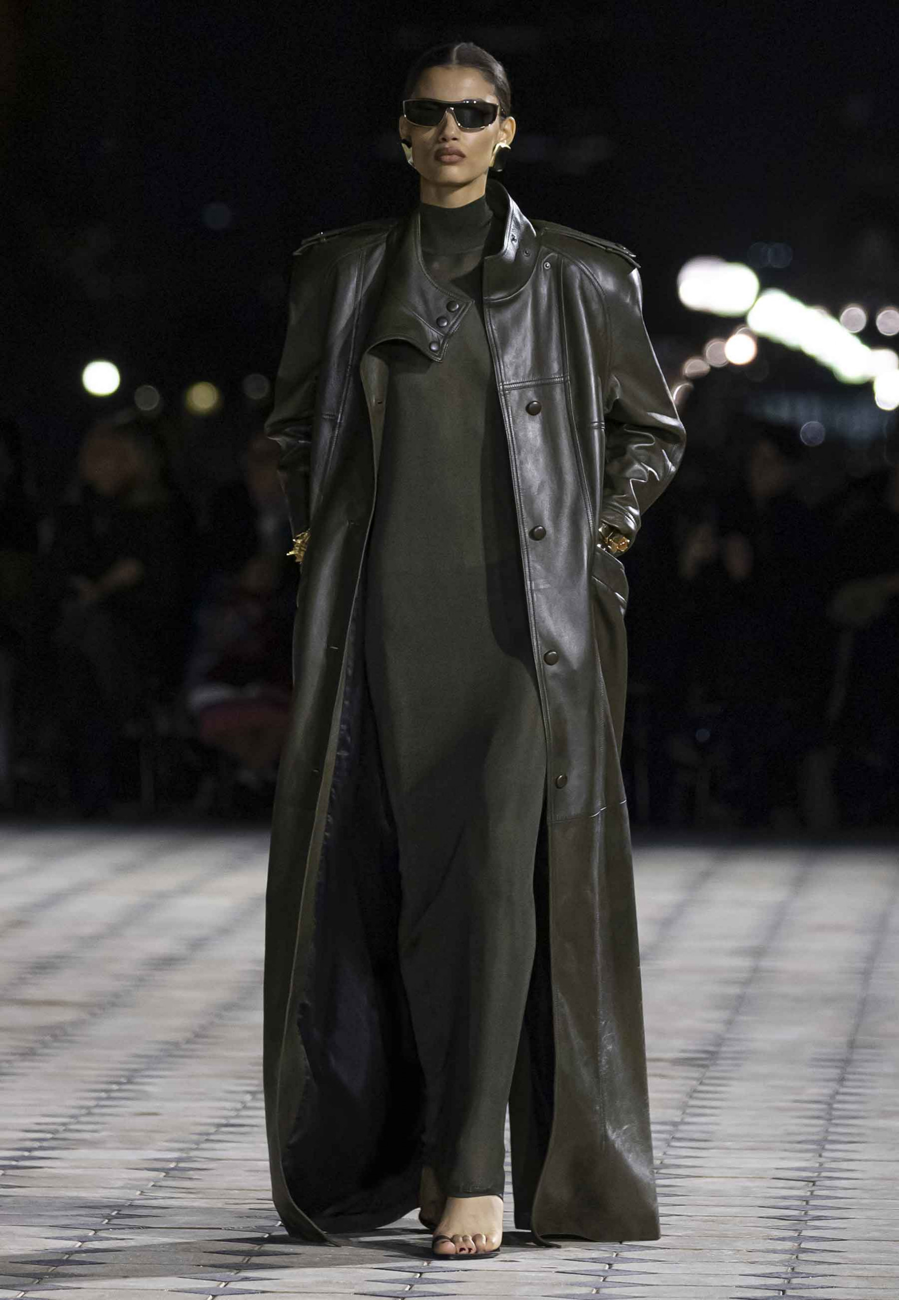 Esses precedentes – especialmente as peças “capuche” com capuz, de meados da década de 1980, que estabeleceram um motivo-chave icônico para a marca – foi um ponto de referência fundamental para Anthony Vaccarello, que se propôs a combinar, para o verão 2023 da Saint Laurent, uma atitude essencial com a silhueta ultra refinada e alongada.