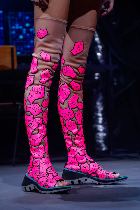 Veja outros saltos vertiginosos e também flatforms propostos pelo designer para o verão 2019 ao longo desta página.