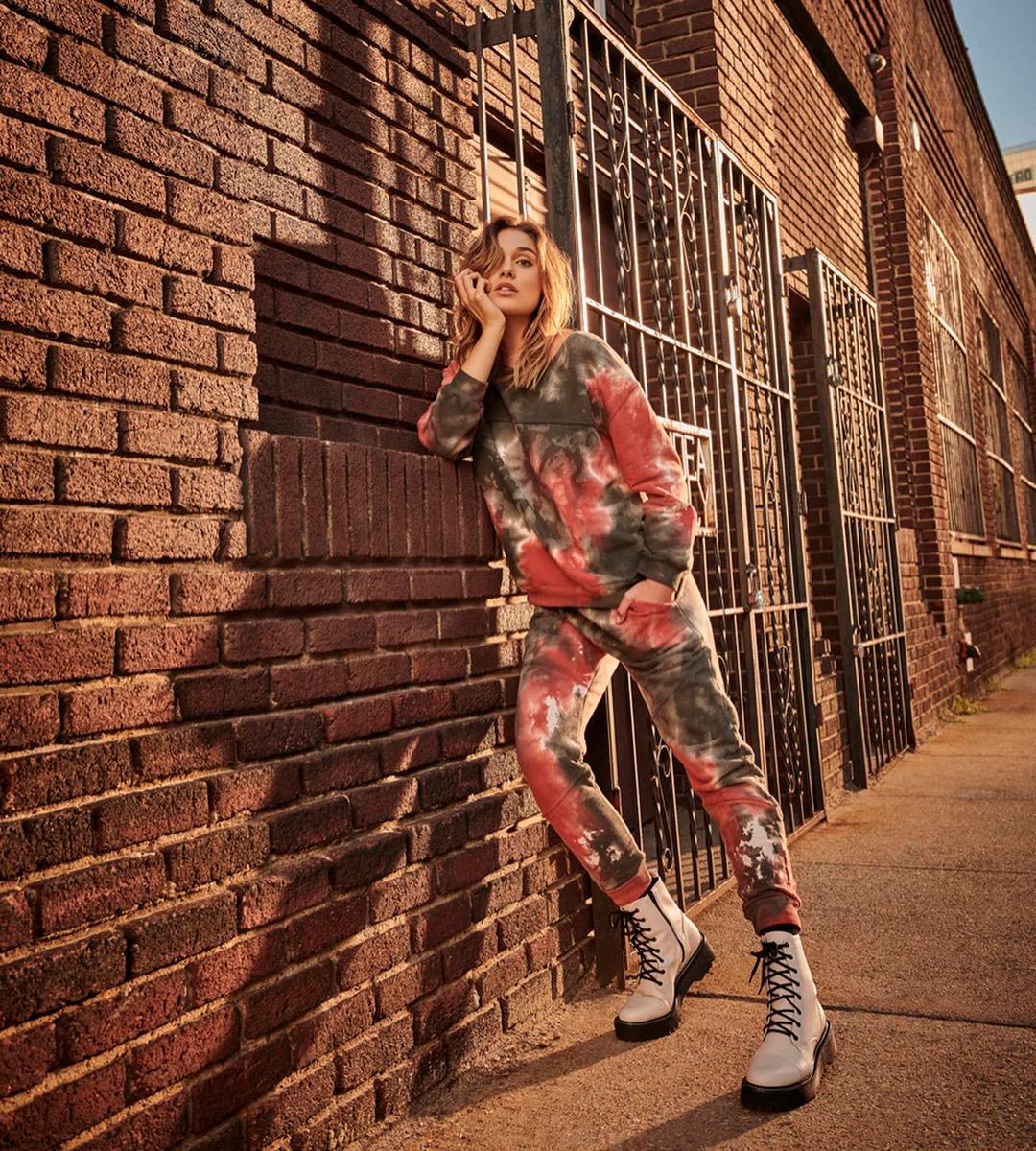 Ela sabe que as roupas de academia podem circular pelas ruas com muito estilo.