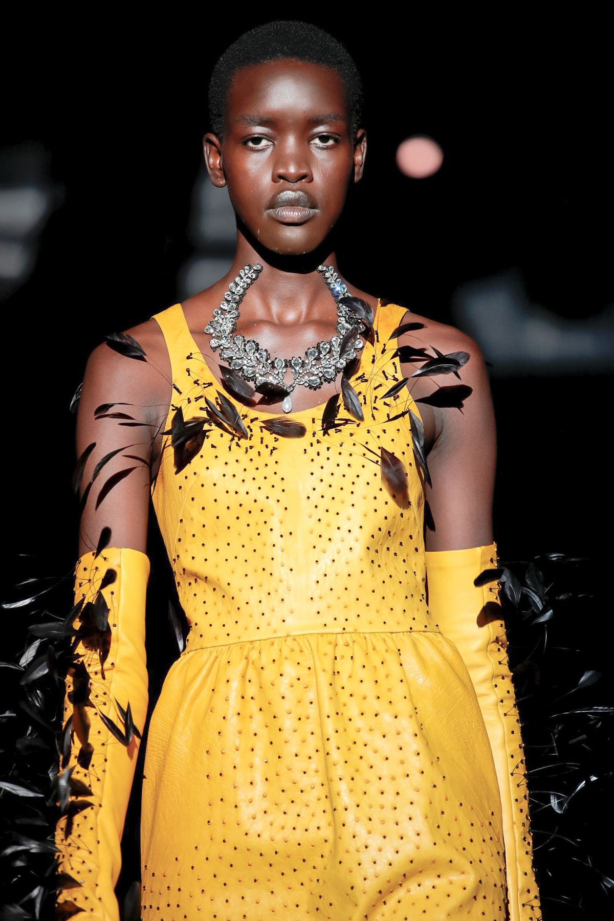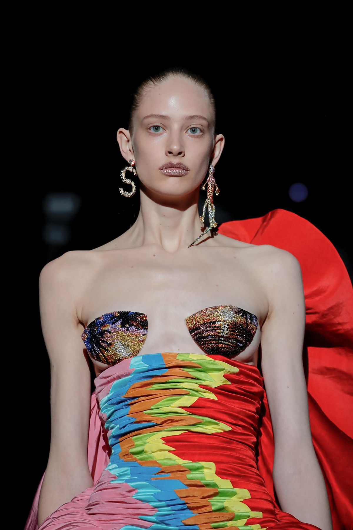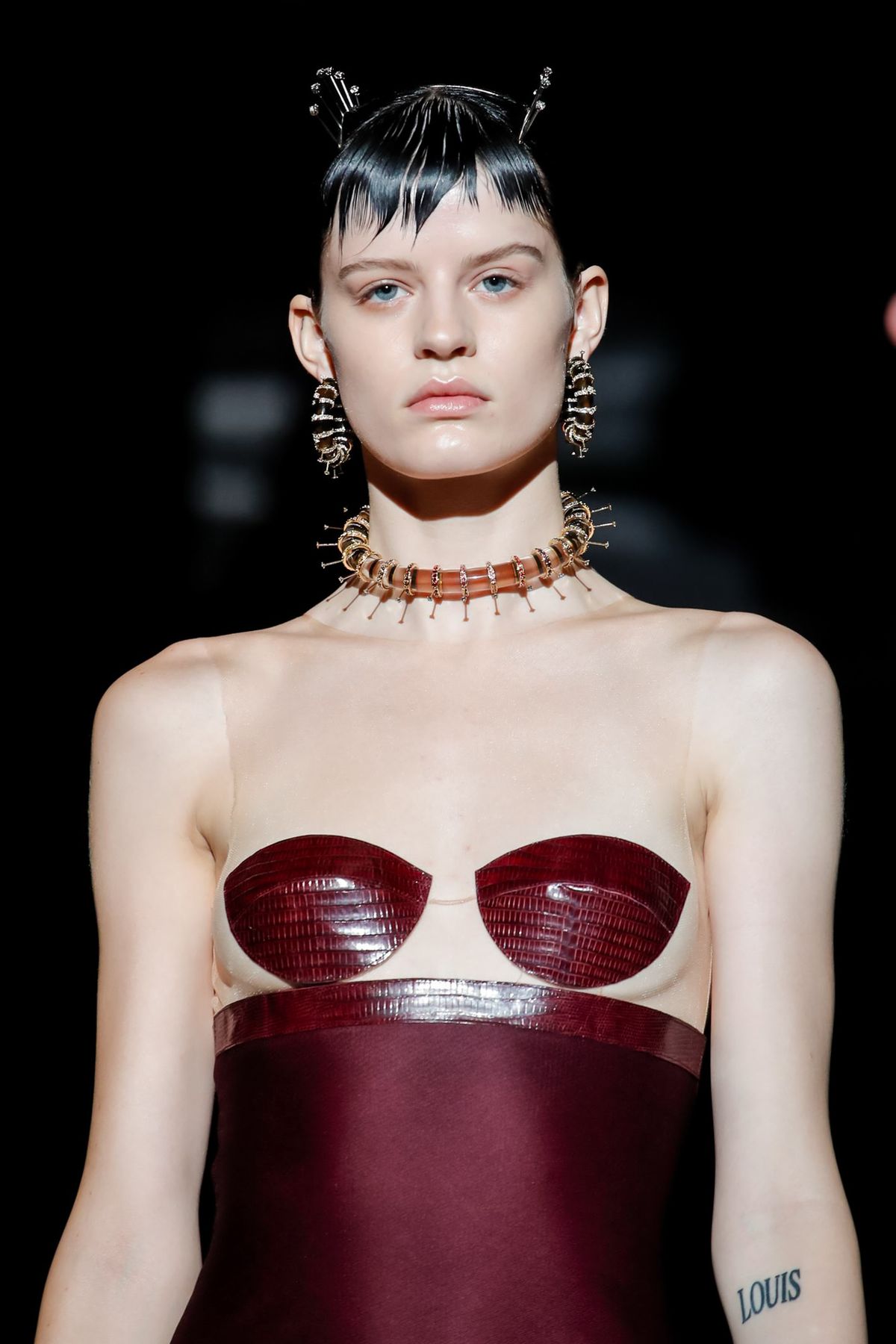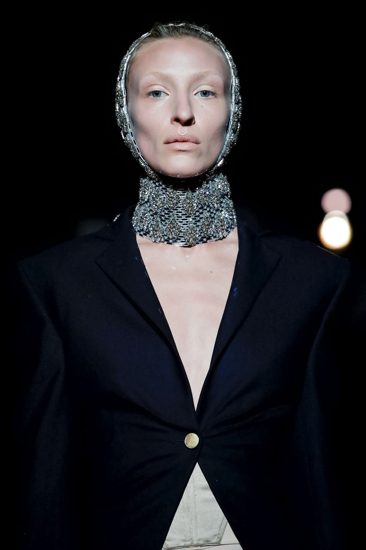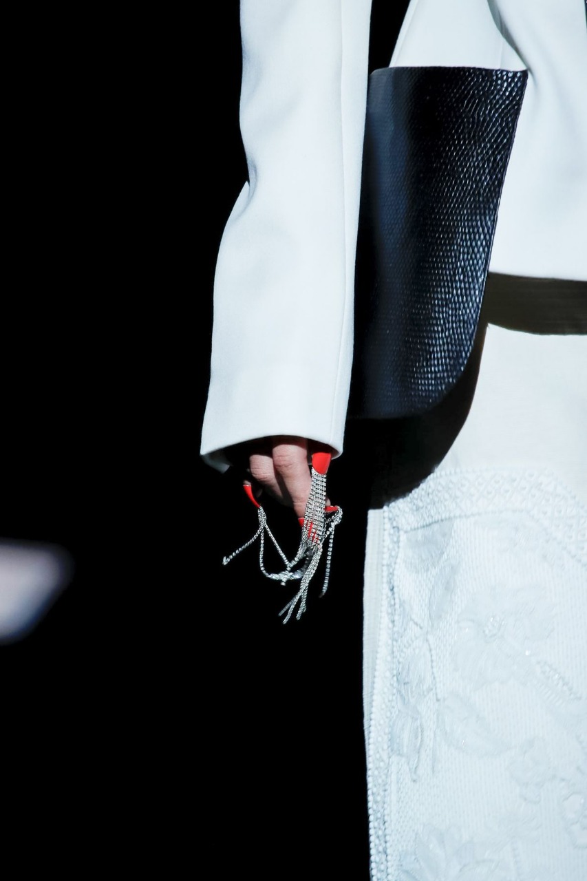 Acessórios surrealistas enriqueceram a passarela, levando a apresentação toques irreverentes e repletos de informação de moda. Destaque para o colar colado no peito, sem dar a volta no pescoço, os maxibrincos que desafiam a gravidade e as correntes coladas nas unhas. Pura inspiração!